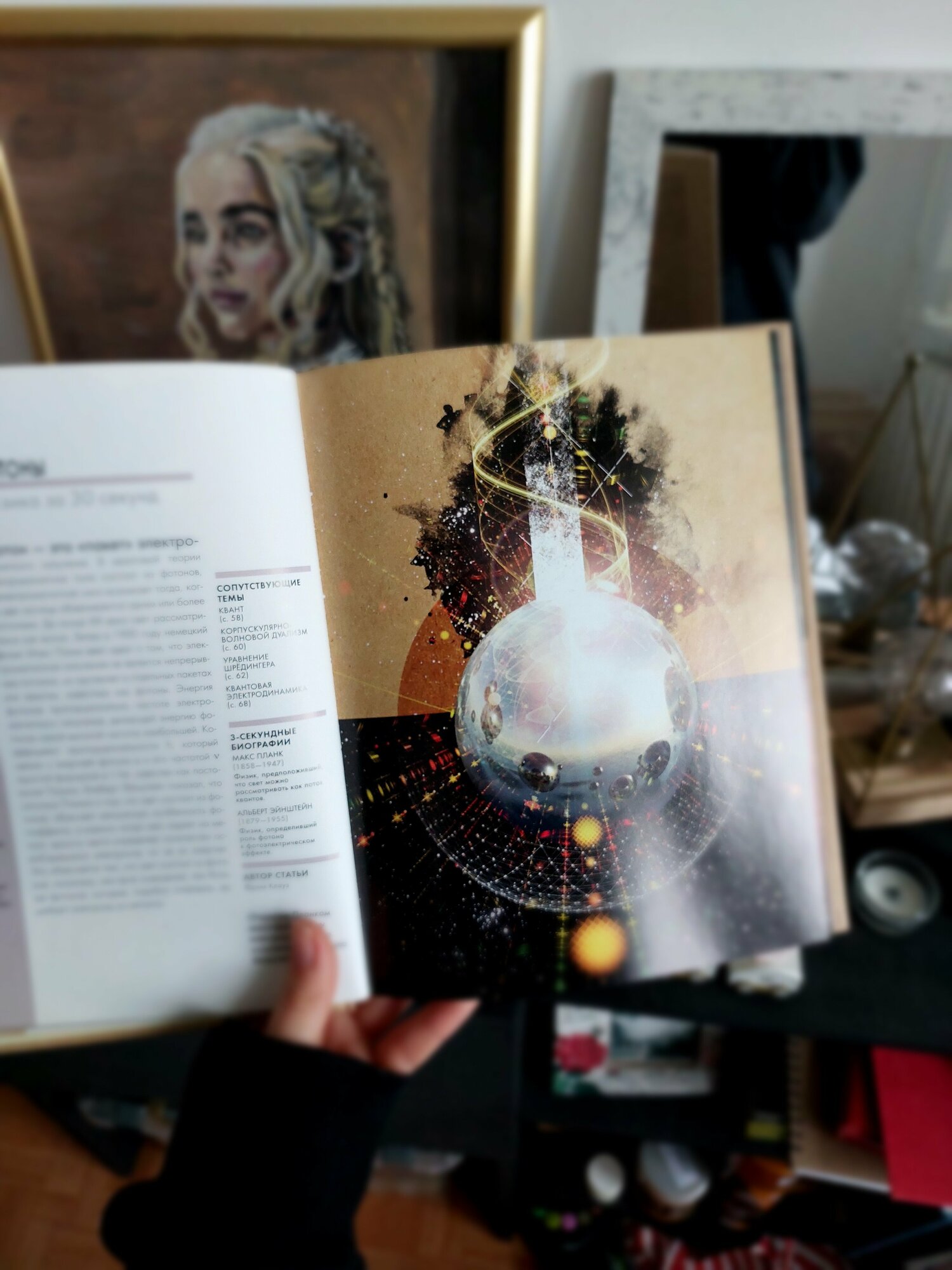 Шикарный подарочный вариант! Книгу приятно взять в руки: шероховатая обложка, плотные глянцевые страницы и лаконично оформленные разделы. Интересно изложена краткая биография некоторых известных учёных. Физику, конечно, по этой книге изучать нет смысла (на мой взгляд поверхностно и размыто), но удовольствие от приобретения 100%.