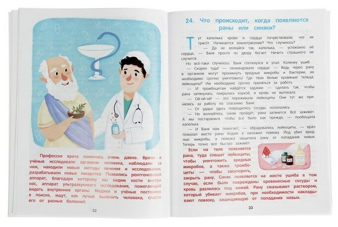 Очень хорошая книжка! Простые понятные малышу истории, необычная подача материала: с первого взгляда сложная информация об организме человека подана в виде забавных сказок про капельку, простым эмоциональным языком. А эти иллюстрации! Такие милые, красивые. Не могла даже подумать, что можно так красиво, мило и для детей изобразить анатомию человека. Все очень понятно, но при этом выглядит красиво и не вызывает отторжения. Книга - супер!