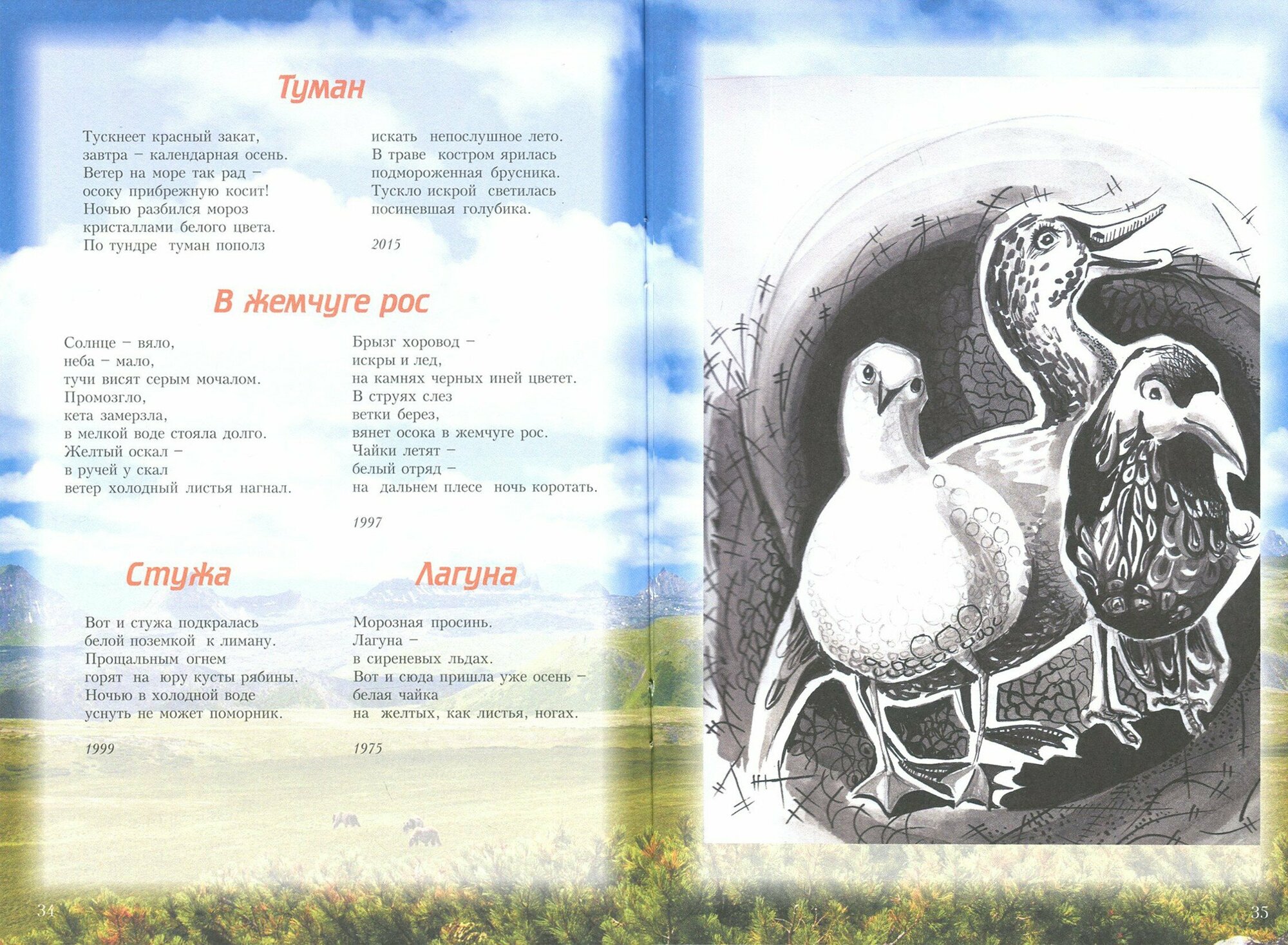 Необычайны в своей стилистики стихотворения о северной природе! Затронута больше океанская тематика. Многое узнаёшь о фауне Камчатки. Рисунки учащихся Петропавловской художественной школы - прекрасны и реалистичны! Невероятные по красоте рисунки! Благодарю автора за столь проникновенный сборник стихотворений!