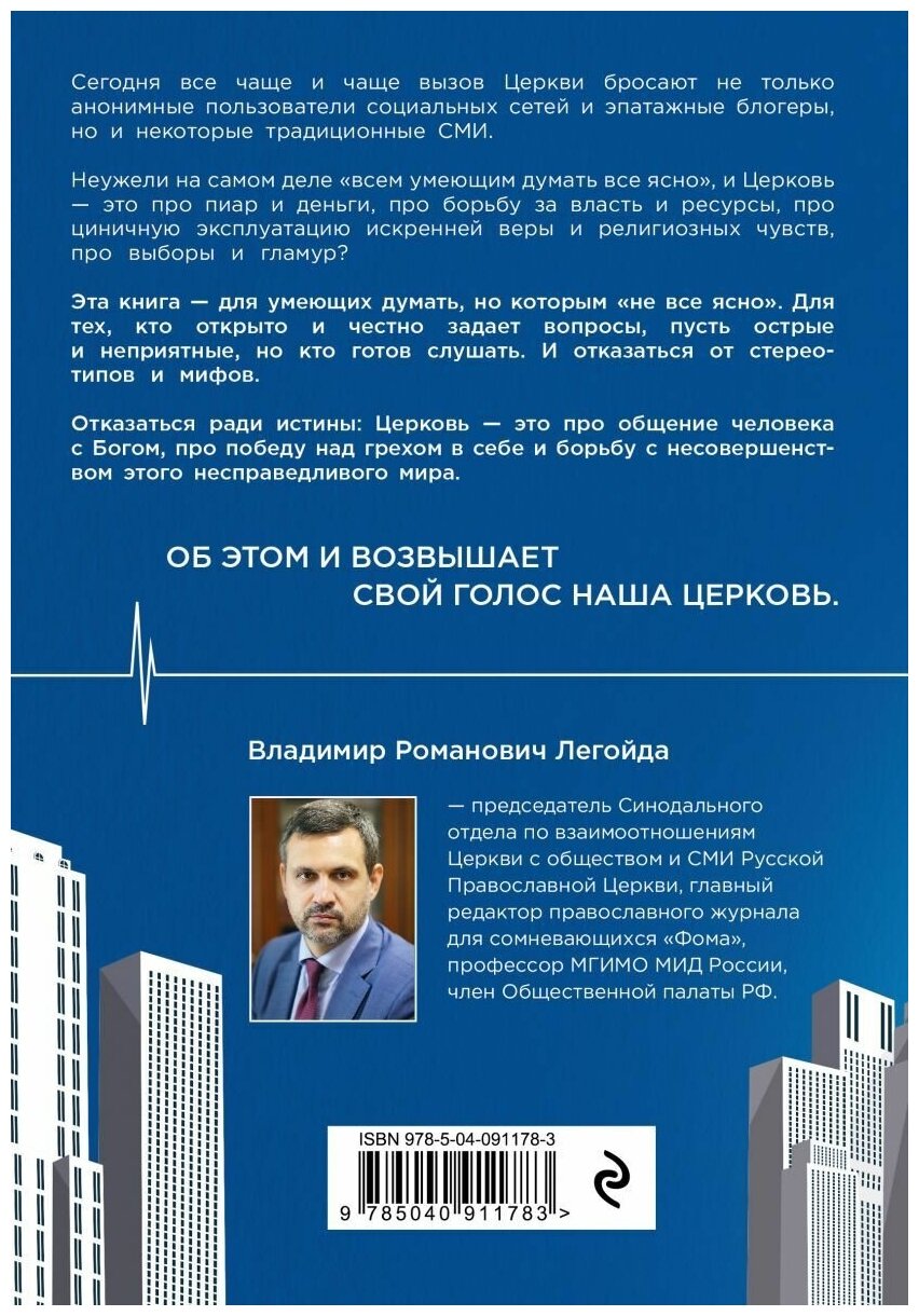 Сегодня все чаще и чаще вызов Церкви бросают не только анонимные пользователи социальных сетей и эпатажные блогеры, но и некоторые традиционные СМИ. Неужели на самом деле "всем, умеющим думать, все ясно", и Церковь - это про пиар и деньги, про борьбу за власть и ресурсы, про циничную эксплуатацию искренней веры и религиозных чувств, про выборы и гламур? В книгу вошли избранные публикации председателя Синодального отдела по взаимоотношениям Церкви с обществом, в которых он касается самых острых и неудобных вопросов, задаваемых сегодня Церкви обществом, и рассматривает основные мифы и стереотипы о Церкви как алчной рассаднице агрессивного мракобесия, обслуживающей прагматичные интересы власть имущих.