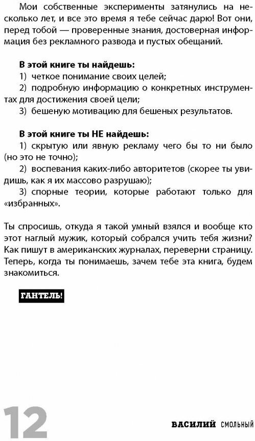 Не секрет то, что Василий находится просто в прекрасной форме, и явно, что добивался он такой формы методом проб и ошибок, но в книге он даёт уже проверенную информацию и экономит наше время, чтобы мы не тратили его впустую и не совершали глупых ошибок. А что самое главное, если посмотреть на другие книги по фитнесу или диетологии стоят каких-то запредельных денег, а тут книга, в которой собраны советы и по питанию и тренировками, витаминам, да и вообще образу жизни и мыслей всего за какие-то копейки, конечно же я купил сразу две его книги, тем более что вторая дополняет первую!