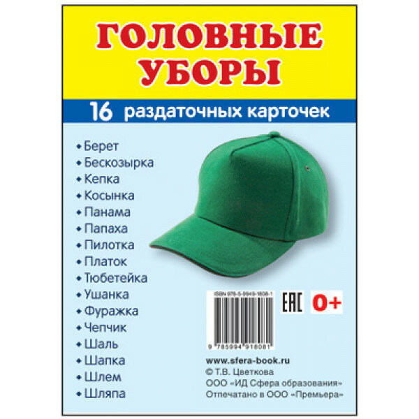 Головные уборы. 16 раздаточных карточек (Цветкова Татьяна Владиславовна); Творческий центр Сфера Издательство, 2018