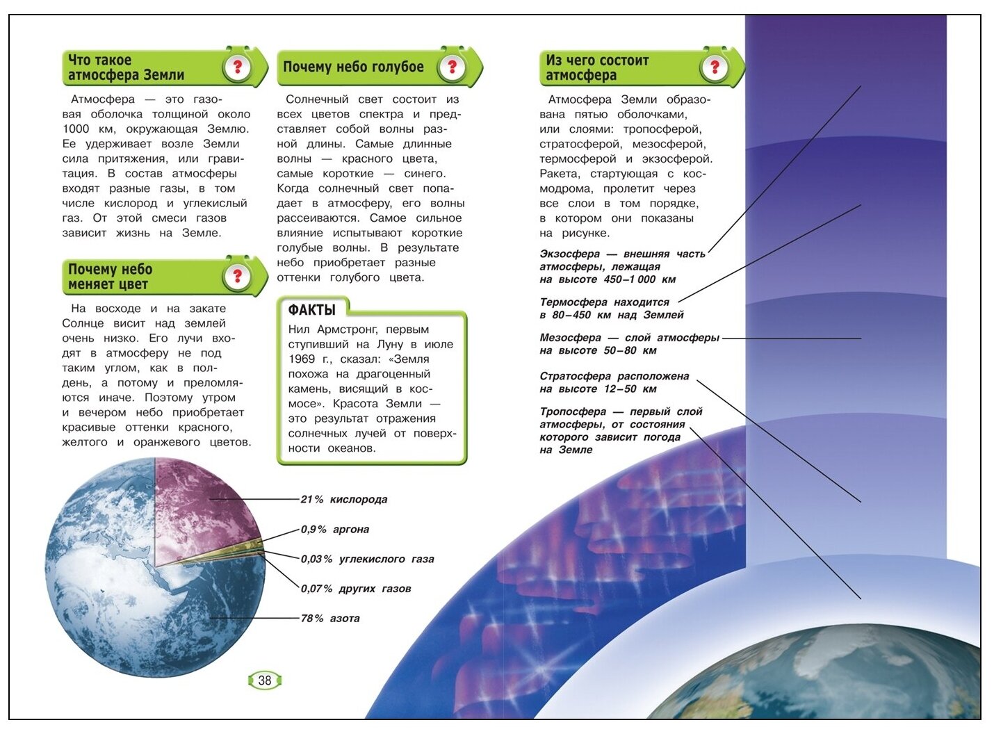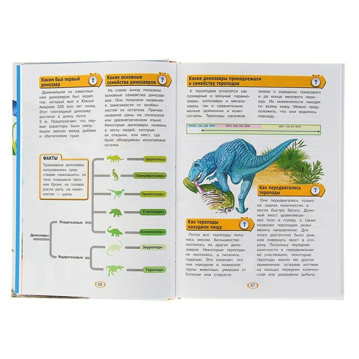 Книга в форме вопросов и ответов рассказывает о том, что существует во Вселенной, почему так важны полеты в космос, и какие чудеса света, до сих пор поражающие наше воображение, - творения человеческих рук. Юные читатели узнают о жизни динозавров и строении человеческого тела, познакомятся с обитателями моря, суши и неба, а также получат советы для разного рода научных экспериментов.