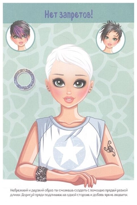 Ты готова к созданию образа настоящей рок-звезды? Стильные раскраски, страницы для зарисовок и модные наклейки в твоем полном распоряжении! Открепи от обложки удобную вкладку с фигурками - и вперед! Придумывай, твори, вдохновляй!