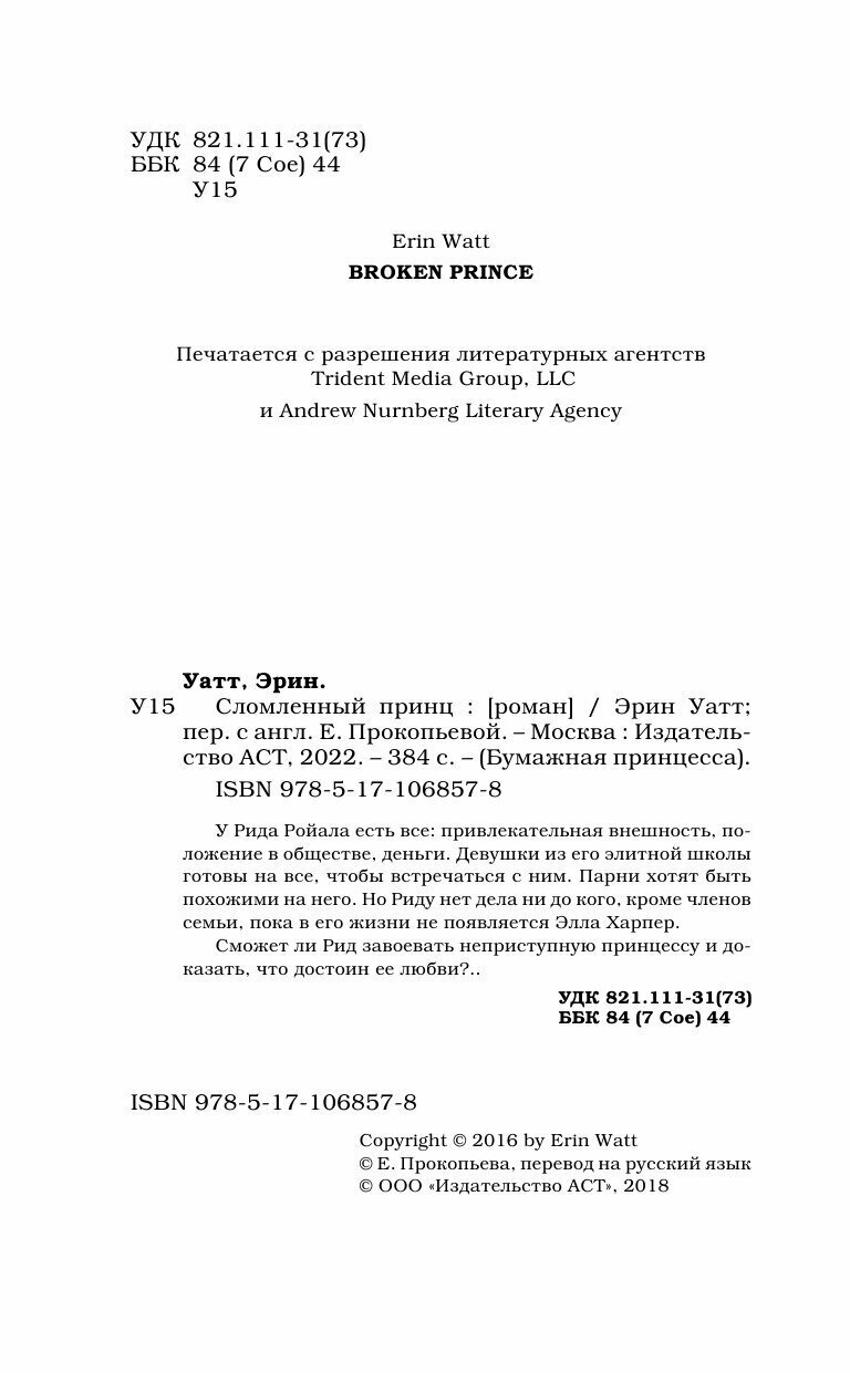Книга: Сломленный принц (Эрин Уатт); Издательство АСТ, 2016