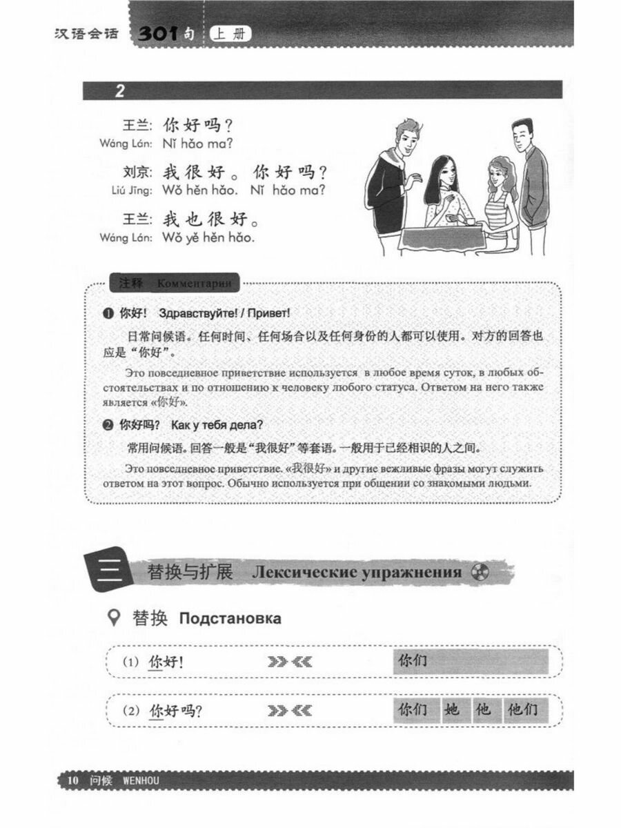 Очень-очень хороший учебник! Учебное пособие в 2-х томах подготовлено преподавателями Пекинского университета языка и культуры! Видите на цифре 0 красные наушники? Это обозначение аудиоматериалов, которые можно скачать по QR-коду (скачивается, кстати, без проблем). Понятное объяснение материала, приятный для глаз шрифт, иероглифы четко прописаны, пиньинь с обозначением тонов.