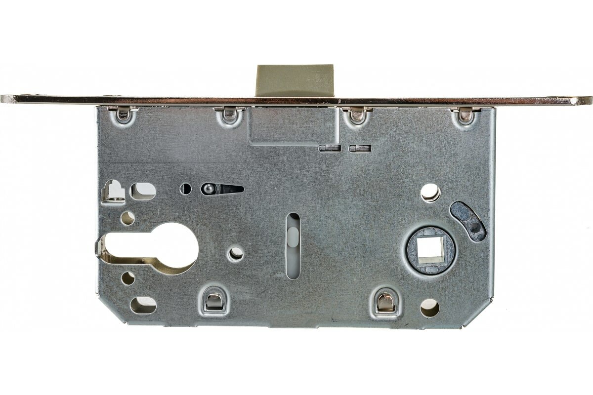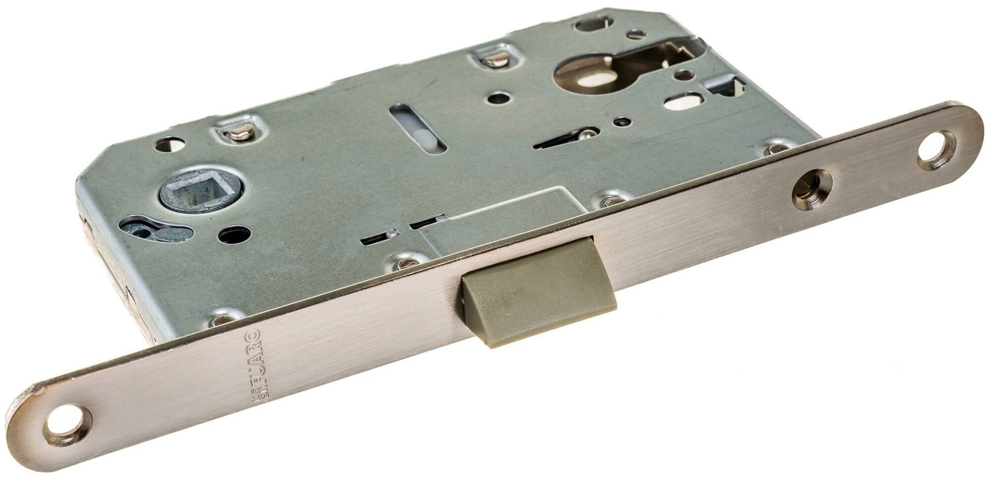 Корпус замка PlasticP85C-50 SN врезается в торец межкомнатной деревянной двери. Пластиковый язычок обеспечивает плавное, мягкое и бесшумное закрытие. Смена его направления позволяет устанавливать корпус замка в правое или левое положение. В стальном корпусе предусмотрено отверстие для ручки, а также для цилиндровой личины. Механизм пластиковый, ударопрочный. В основе его работы лежит блок усиленных пружин, который рассчитан на более чем 250 тысяч циклов закрывания/открывания.