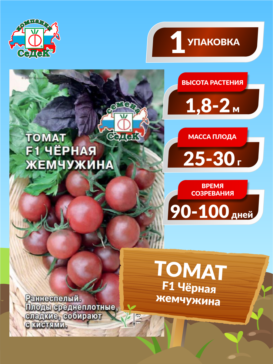 Семена томата Черная жемчужина F1 0.1г — урожайные раннеспелые томаты для дома и дачи. Уникальный вкус, цветная упаковка, российский бренд Седек.