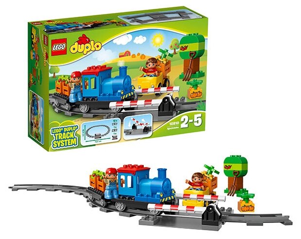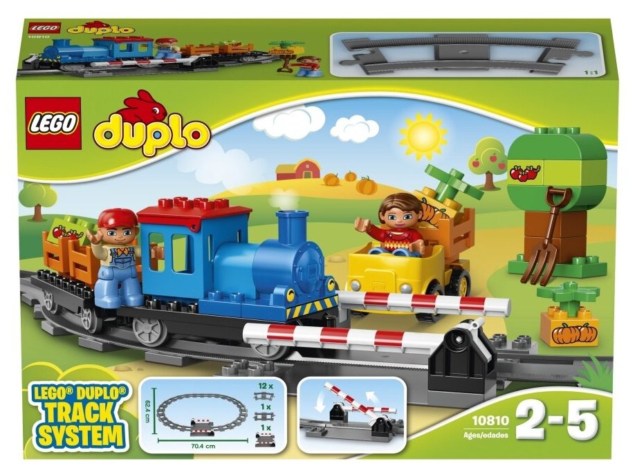 LEGO DUPLO 10810 Локомотив сможет заинтересовать Вашего ребенка. Железнодорожное полотно является важным транспортным узлом игрушечного города: красочный поезд доставляет все необходимые продукты для покупателей. Сегодня он везет фермерские овощи, которые были выращены на самых лучших полях. Помоги машинисту поскорее доставить весь в груз в городок!