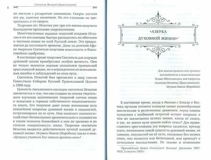 Настоящее издание избранных писем святителя Игнатия о духовной жизни является не только одним из таких истинно отеческих писаний, но и тем необходимым советом, в котором так нуждаются современные христиане. Ценность письменного наследия угодника Божия заключается в том, что оно создано на основе тщательного изучения аскетических творений и испытано в горниле собственного подвижнического опыта.