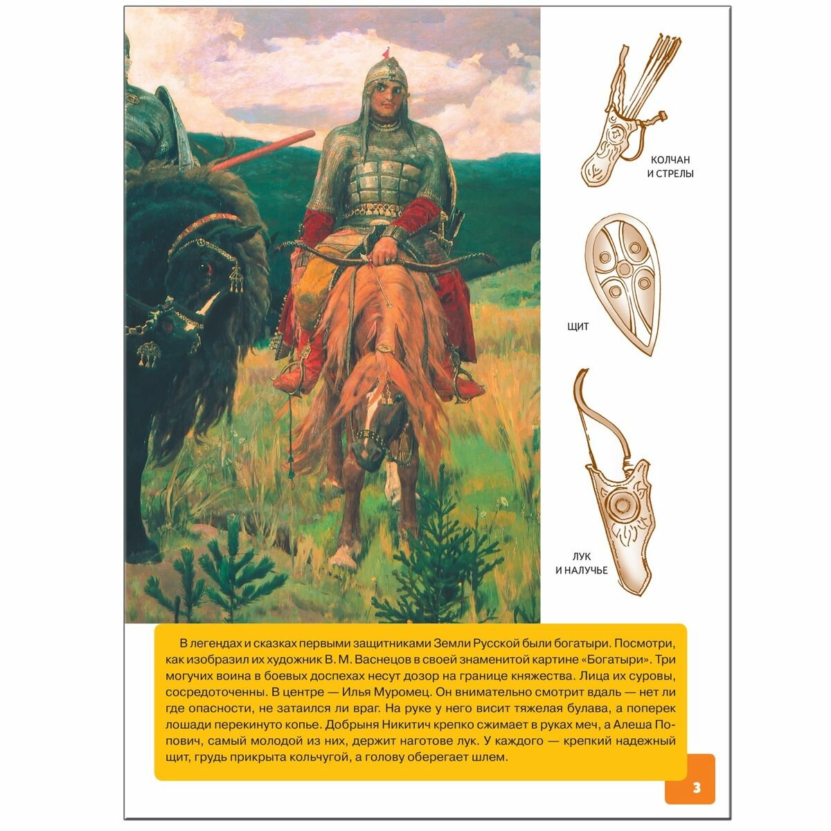 Книга "Защитники Отечества" познакомит ребенка с историей российской армии – от былинных богатырей до современных солдат: моряков-подводников, артиллеристов, танкистов, десантников и др.