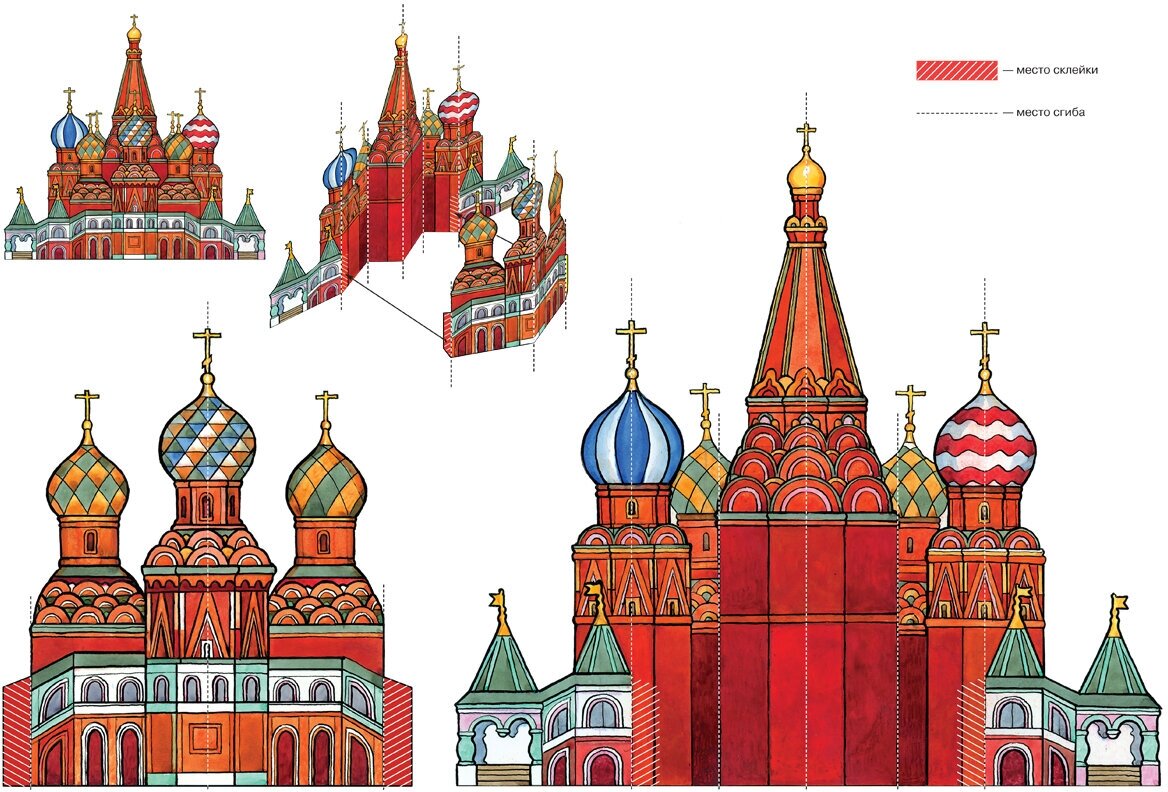 Альбом содержит лист с наклейками и заготовку Храма Василия Блаженного.
