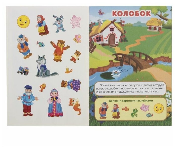 Книжка не большого формата, листы плотные, качественные. Понравилась сама идея, книжка по мотивам сказки колобка которая дополняется наклейкам. Задумка интересная, ребенка заинтересовала, эта первая книжка такого формата. По ней можно рассказывать сказку и приклеивать персонажей. У ребенка развивается и мелкая моторика рук а так же воображение. Хочу еще приобрести книжки такого формата по мотивам других сказок.