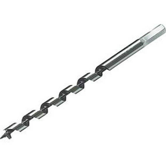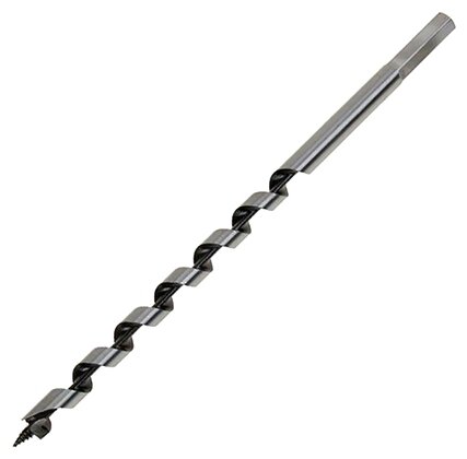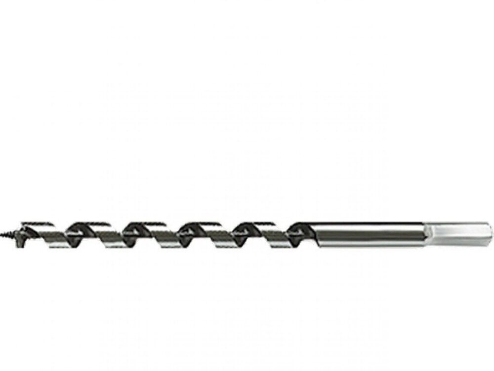 Изготовлено из углеродистой стали с твердостью режущей части 40 HRС. Сверло имеет центрирующее остриё со спиральной нарезкой, уменьшающей осевую нагрузку, и острую подрезную кромку, которая позволяет с высокой точностью просверлить отверстие с гладкими поверхностями, предотвращая смещение сверла и исключая необходимость в предварительном засверливании. Шестигранный хвостовик обеспечивает надежное удержание сверла в патроне.