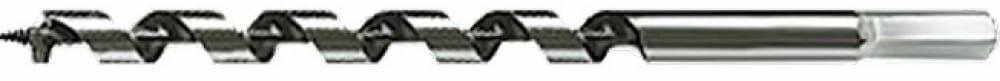 Изготовлено из углеродистой стали с твердостью режущей части 40 HRС. Сверло имеет центрирующее остриё со спиральной нарезкой, уменьшающей осевую нагрузку, и острую подрезную кромку, которая позволяет с высокой точностью просверлить отверстие с гладкими поверхностями, предотвращая смещение сверла и исключая необходимость в предварительном засверливании. Шестигранный хвостовик обеспечивает надежное удержание сверла в патроне.