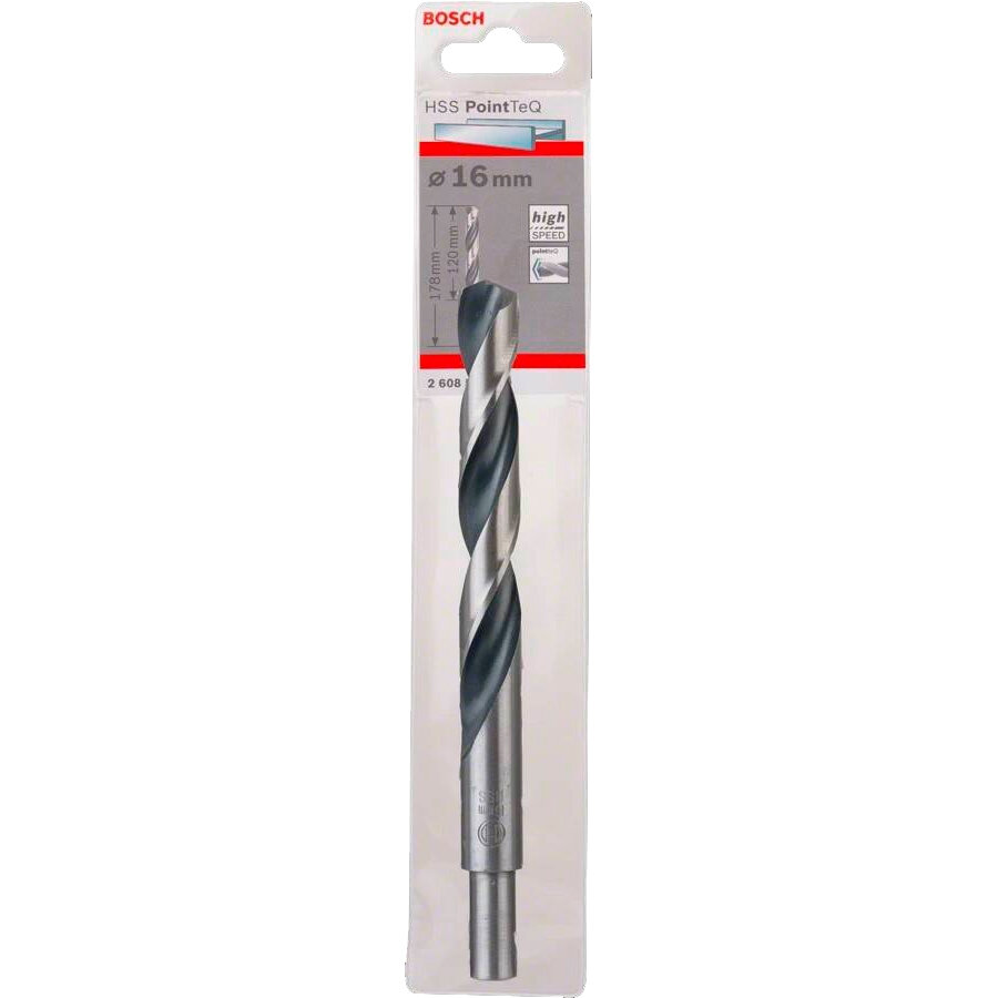 Сверло по металлу Bosch HSS PointTeQ 16x178мм (310) не требует накернивания. Снабжено цилиндрическим хвостовиком и предназначено для работы с дрелями-шуруповертами и сверлильными стойками. Угол заточки наконечника – 135 градусов.
