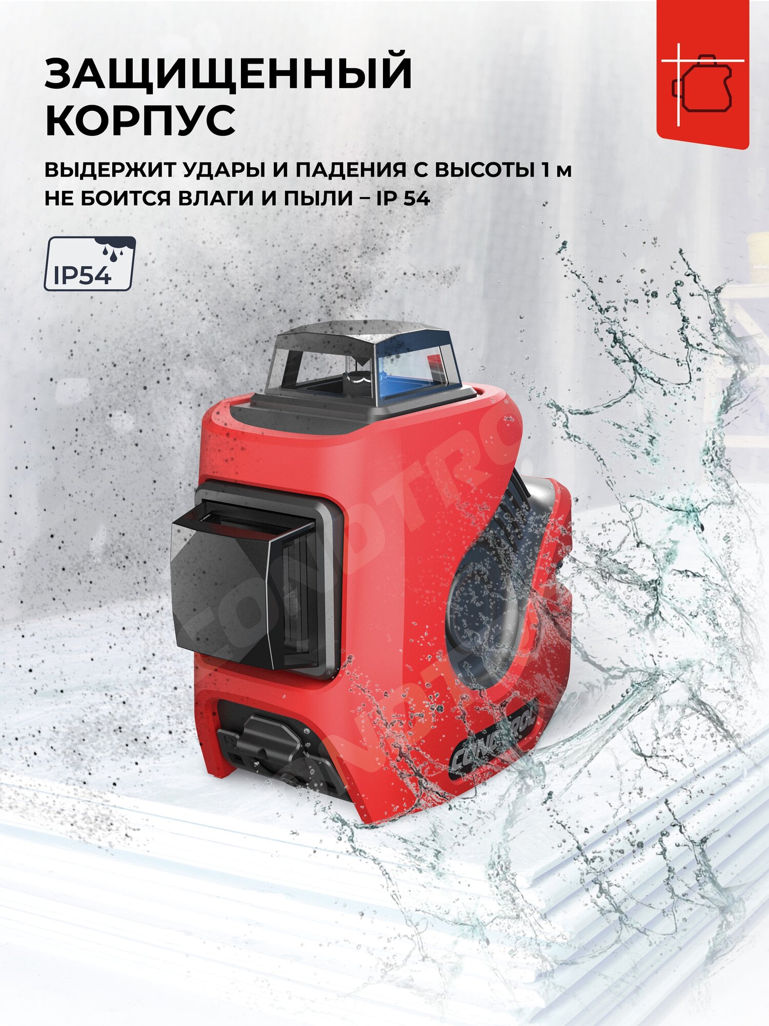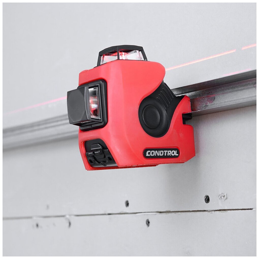 Лазерный нивелир CONDTROL 1-2-128 можно использовать при укладке керамической плитки, напольных покрытий, монтаже потолков и перегородок. Он проецирует вертикальную и горизонтальную плоскости с углом развертки 360 градусов. Корпус нивелира выполнен из ударопрочного пластика с резиновым демпфером, что обеспечивает защиту от поломок в случае падения. В комплекте поставляется переходник для крепления на штатив с резьбой 1/4".