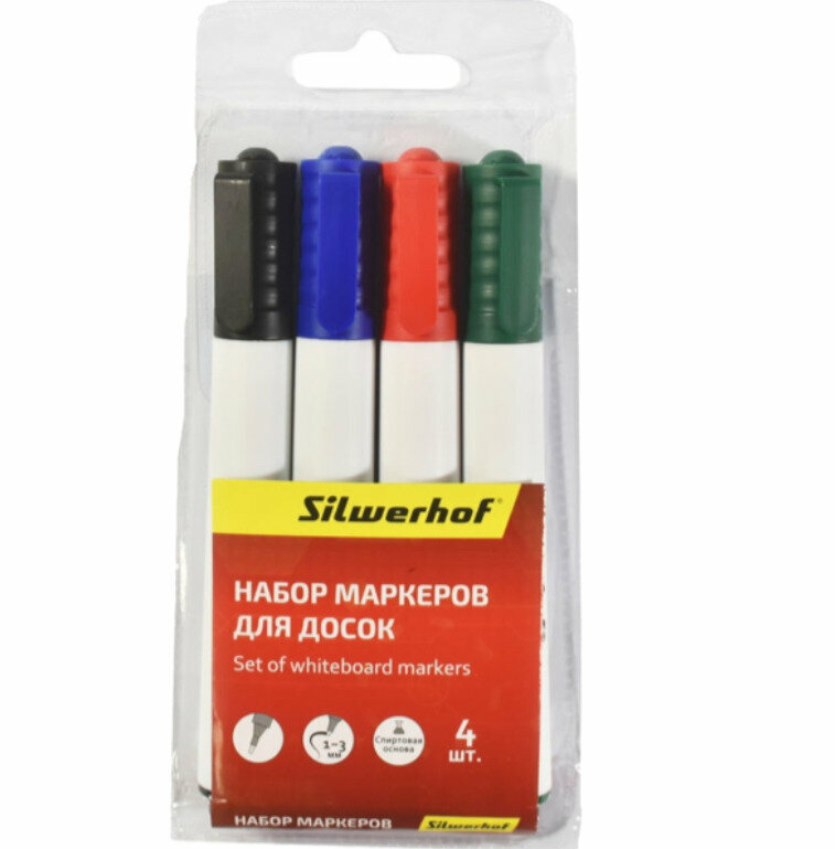 Сервис сравнения цен СкидкаГИД предлагает сравнить цены на товар «Набор маркеров для досок Silwerhof PRIME (толщина линии 1-3мм) 4цв. пакет с европодвесом 118005-00»
