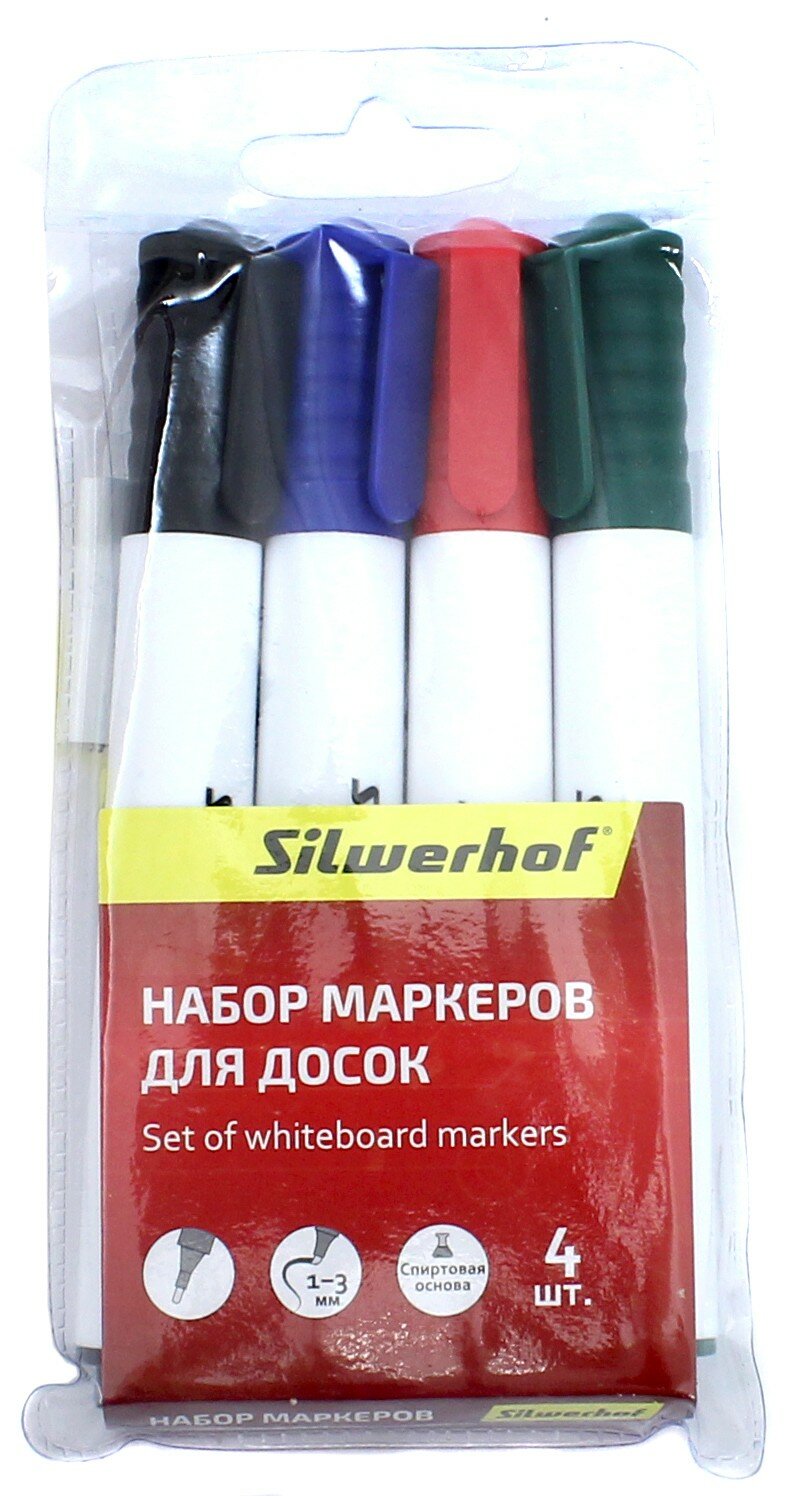 Набор маркеров для досок Silwerhof PRIME (толщина линии 1-3мм) 4цв. пакет с европодвесом 118005-00