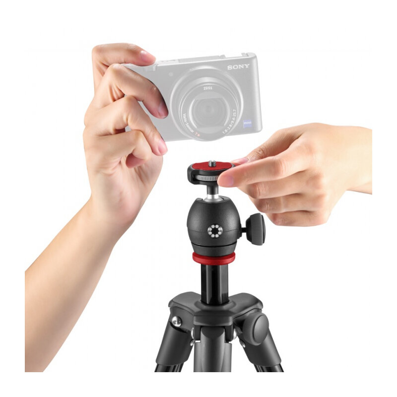 Manfrotto MKCOMPACTLT один из самых компактных и легких штативов Manfrotto и является промежуточной моделью между настольными и полномерными штативами. Он создан для беззеркальных и компактных фотокамер большего размера. Также благодаря большой выносливости хорошо подойдет для небольших зеркальных фотоаппаратов. Головка штатива имеет универсальное крепление 1/4", по этому подходит для большинства фотокамер.