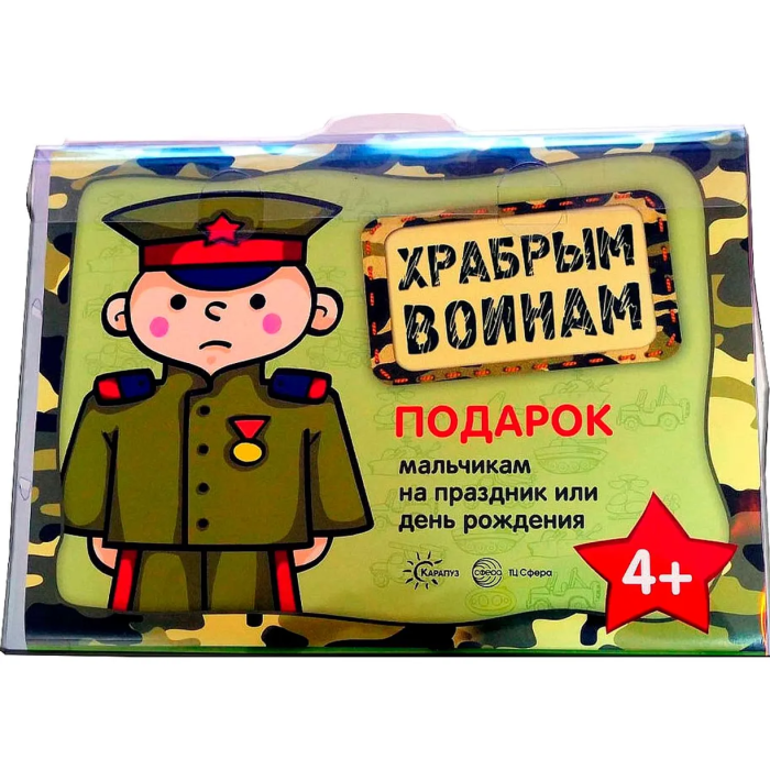 Внутри подарочного чемоданчика скрыто настоящее сокровище, которое обязательно понравится будущему защитнику. Увлекательные и захватывающие опыты для будущих разведчиков, обязательная тренировка устного счёта для завтрашних летчиков и космонавтов, недюжинная сообразительность и умение выделять главное для мечтающих стать самураями. Примеры доблестных сражений и неслыханной отваги, сказочные персонажи на которых все мы так хотели походить в детстве.