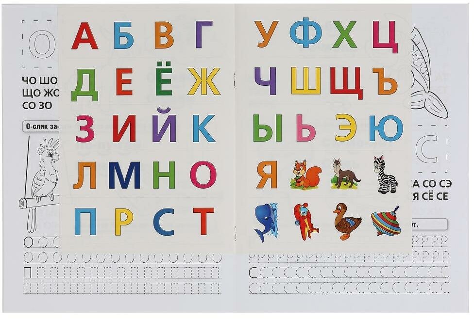 Обучающая раскраска с наклейками сделана в виде букваря. На каждой ее страничке есть рисунки для раскрашивания, которые построены в алфавитном порядке. Ребенок будет с удовольствием раскрашивать картинки, запоминая названия и порядок букв, а также, знакомясь с животными и предметами, которых он прежде не видел.