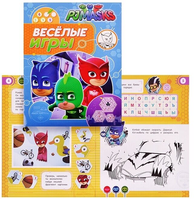 Добро пожаловать в веселую компанию Грэга, Коннора и Амайи – персонажей мультсериала "Герои в масках"! И пусть им всего по шесть лет, но мир полагается на их храбрость. "Веселые игры" - это отличный способ весело и с пользой провести время. Интересные задания помогут развить логическое мышление и творческие способности вашего малыша. А главное - герои любимого мультфильма не дадут ребенку заскучать!
