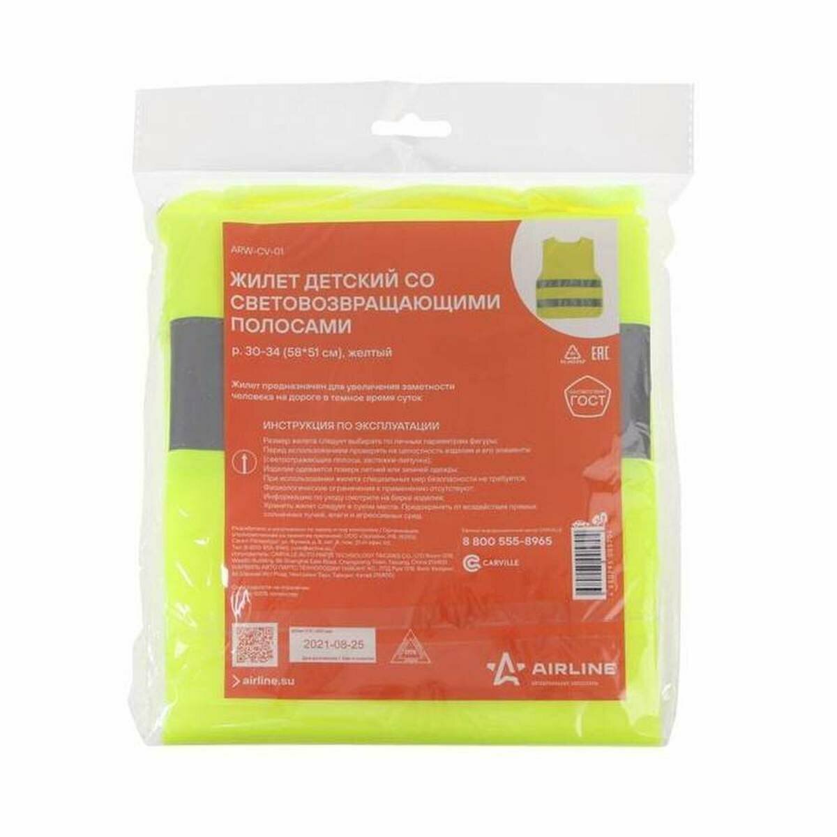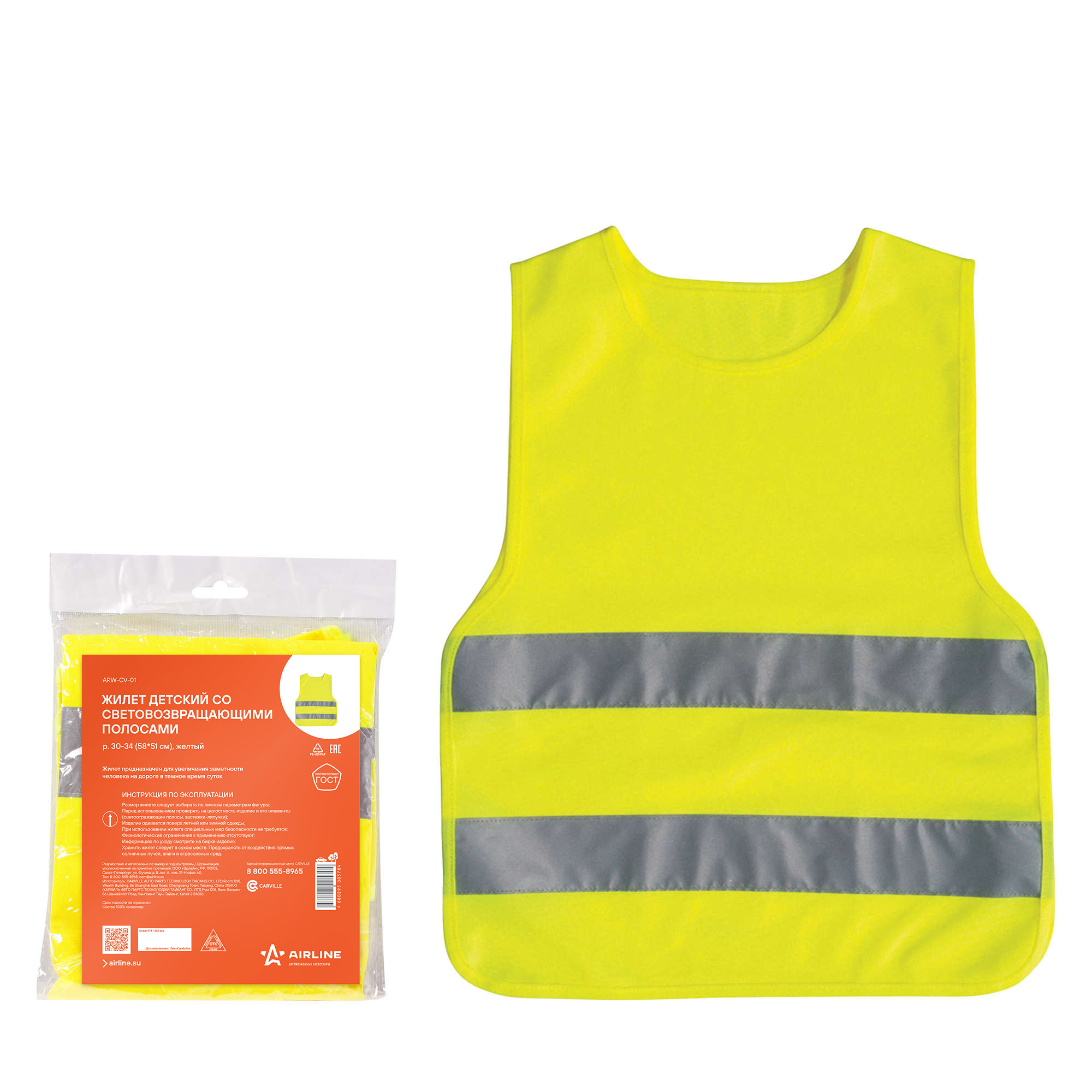 | Доп. наименование Водопад | Жилет Airline ARWCV01 детский со световозвращающими полосами, р. 30-34 (58х51 см), желтый |