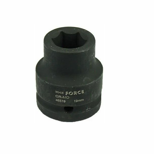 Головка торцевая 19мм 3 дюйма 6-гранная ударная L=50мм RockForce Головка в форме правильного шестиугольника. Используется, в частности, в машиностроении, мебельной, авиационной и автомобильной промышленности. Головка изготовлена из хром-ванадиевой стали. При изготовлении, используется метод горячей ковки, что делает инструмент устойчивым к сильному физическому воздействию, и позволяют классифицировать головку как «ударную».