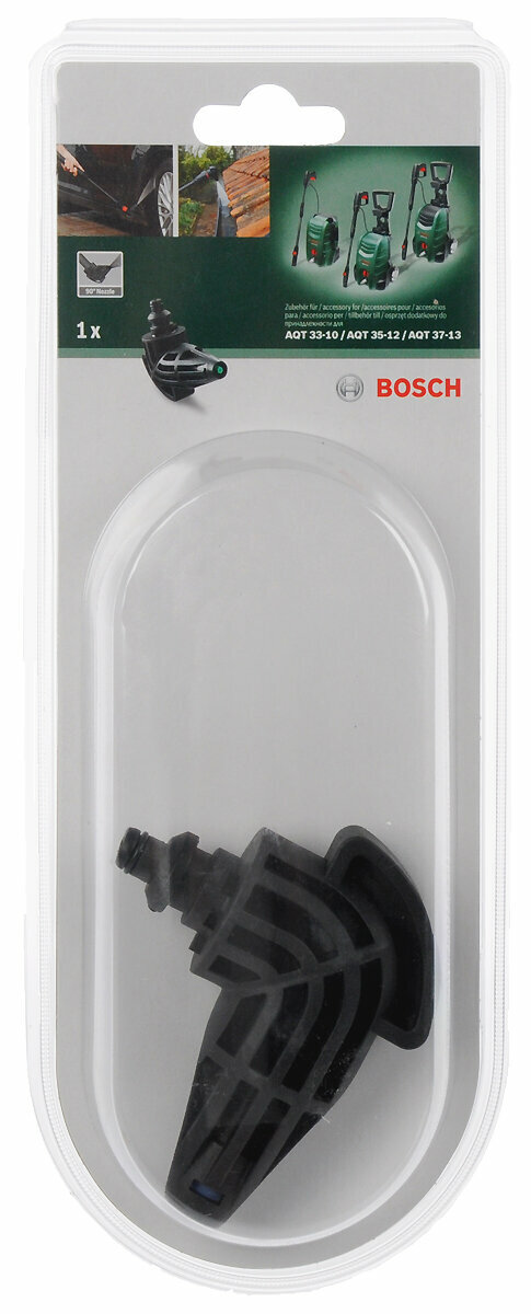 Насадка для минимоек, позволяющая направлять струю под углом в 90 градусов, что может быть крайне удобно при очистке труднодоступных поверхностей. Совместима с минимойками Bosch AQT 33-10, AQT 35-12, AQT 37-13.