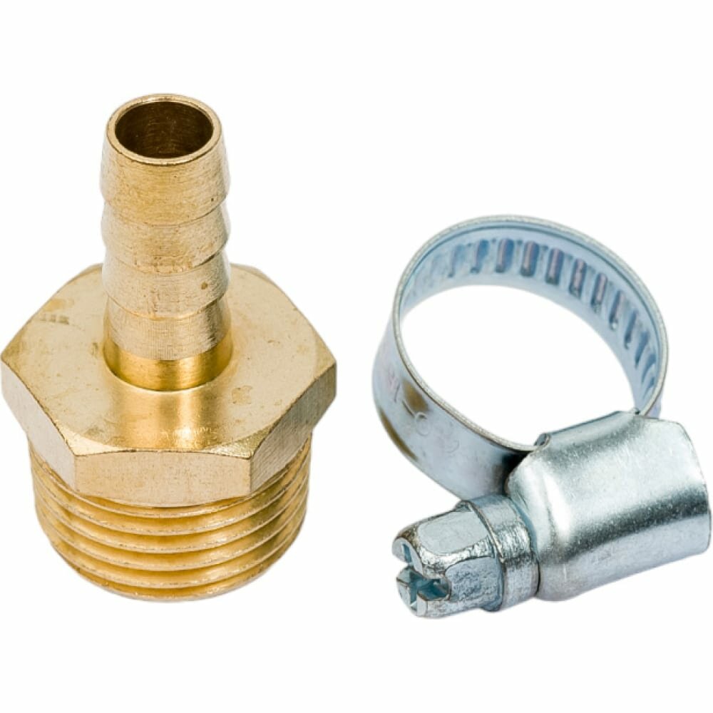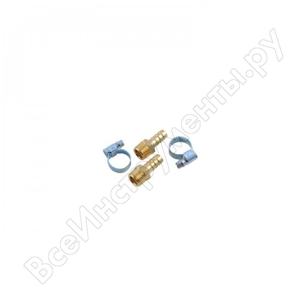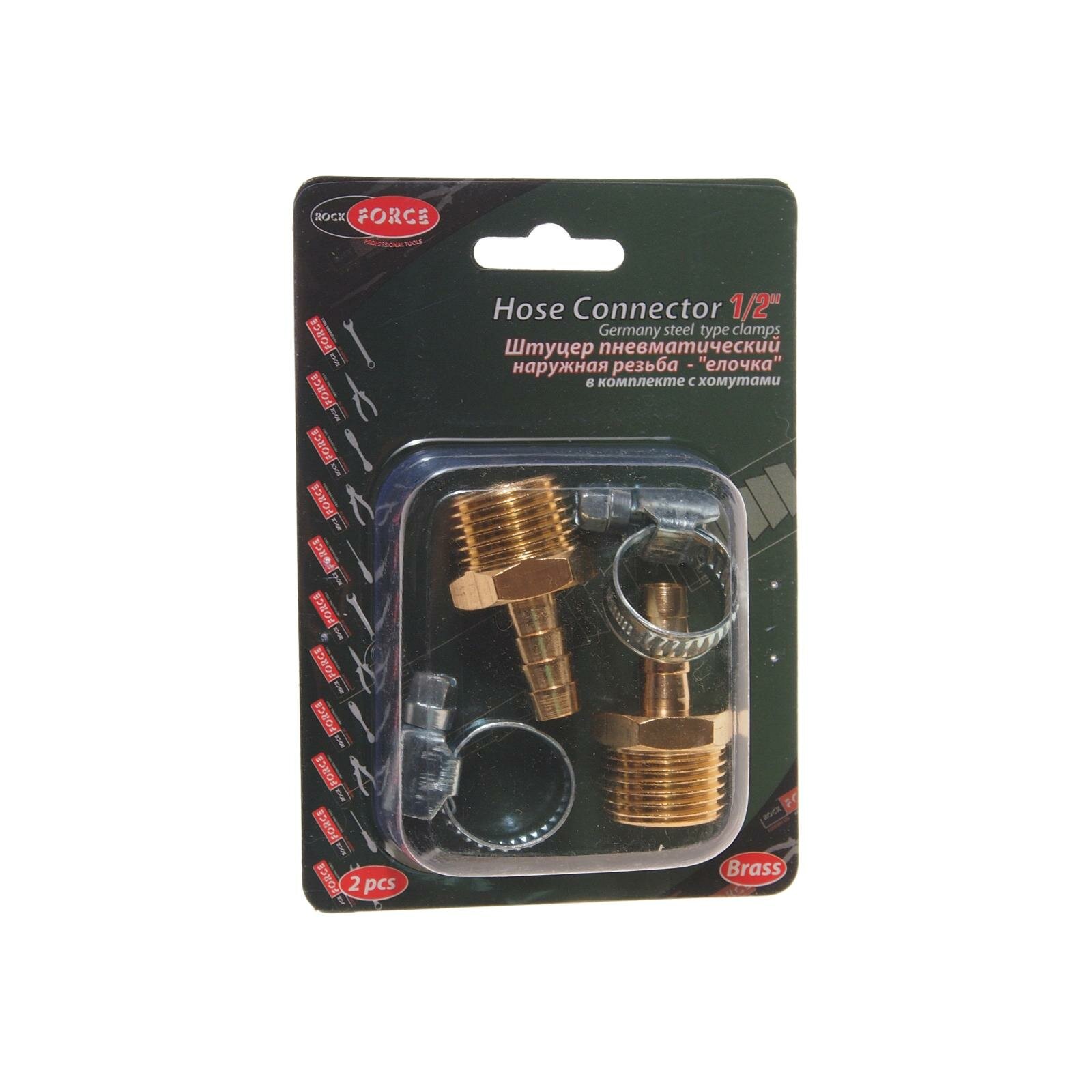 Штуцер RockForce пневматический наруж. резьба 1«- «елочка» 8мм (2 шт. + хомуты) изделие используется при работах с пневмоинструментом, выполняет задачу соединительного элемента со шлангом, через который подается сжатый воздух к необходимому инструменту. Благодаря герметичности конструкции, позволяет задействовать в создании магистралей из целого ряда пневматических элементов.