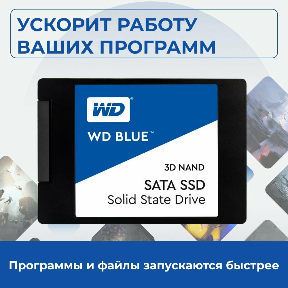 Твердотельный накопитель WD Blue SATA SSD разработан специально для высокоскоростных вычислительных систем и отличается большой емкостью, повышенной надежностью и молниеносной скоростью.