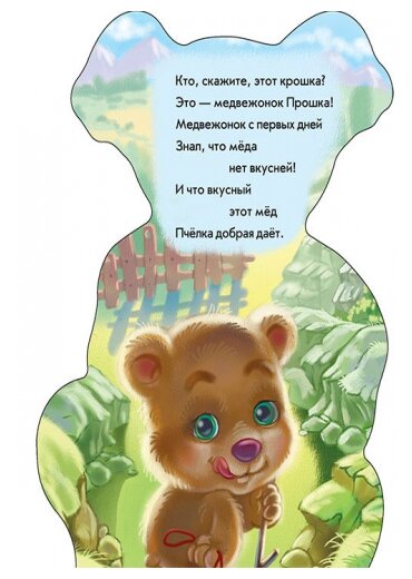 Я в восторге от этой книги. Достаточно плотный картон, ручки вверх-вниз двигаются, милейшие иллюстрации, стихотворение очень доброе про медвежонка,который мечтал попробовать мёд. Смущает только что стихотворение про медвежонка,а на обложке вроде девочка медведик с бантиком и таааакими глазами,что мой сынуля грудничок ей улыбается. Ну,если такая симпатяга ему нравится,значит со вкусом всё хорошо. Из этой же серии у нас книжка про утенка,который искал компанию поплавать,тоже доброе стихотворение и замечательные иллюстрации. Непременно купить,а если по акции или со скидками,то и пару тройку из этой серии.