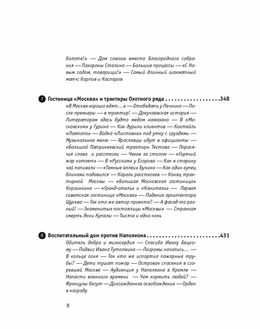 Это книга-экскурсия, книга-путеводитель. Дворец Юсупова и Консерватория, Университет на Моховой и Елисеевский магазин, Благородное собрание и Ярославский вокзал, гостиница "Москва" и Воспитательный дом, усадьба Измайлово…