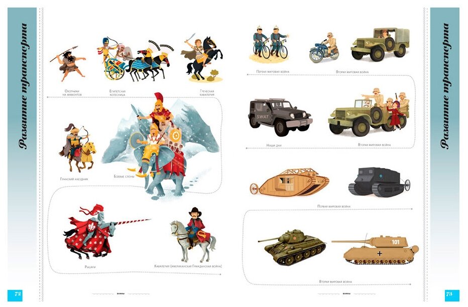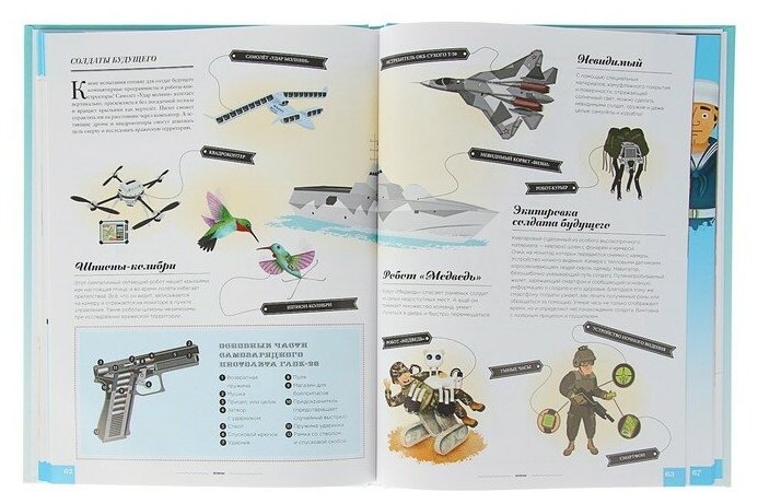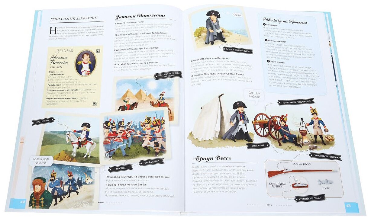 Замечательная энциклопедия! Чудесный подарок для ребенка интересующегося военной историей. Затрудняюсь даже определить, для какого возраста эта книга и для кого лучше, мальчика или девочки. В нашей семье ее прочли с огромным интересом все, от 6 до 70, даже бабушка и внучка-студентка. Книга не толстая, всего 1см, но наполнение чудесное. Иллюстрации яркие. На каждом развороте рассказ об одном из периодов мировой истории от охотников на мамонтов, до солдат будущего. Отдельные главы рассказывают о знаменитых полководцах и сражениях, дальше идут иллюстрации отдельно по темам: оружие, экипировка и т.д. Очень рекомендую эту крайне познавательную книгу и выражаю огромную благодарность ее авторам, издательству и магазину.