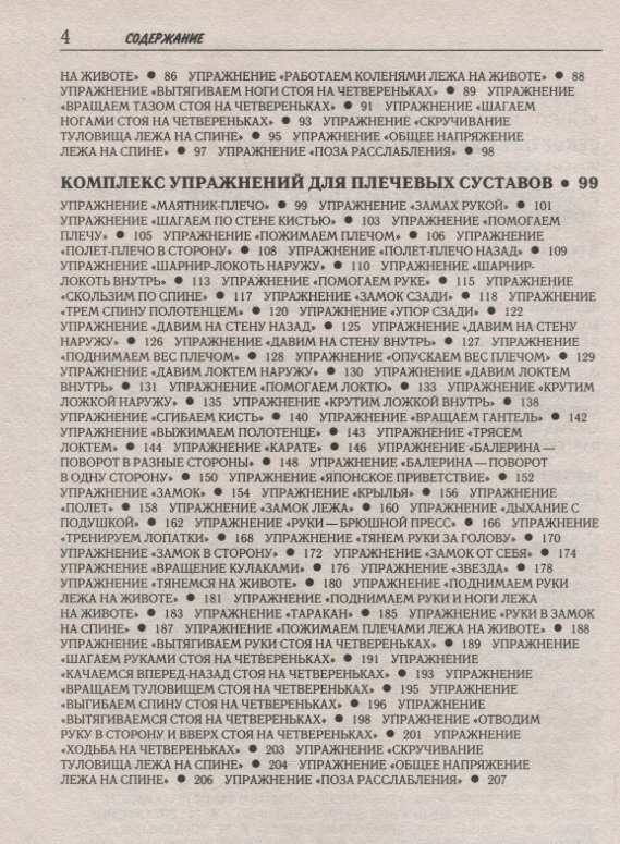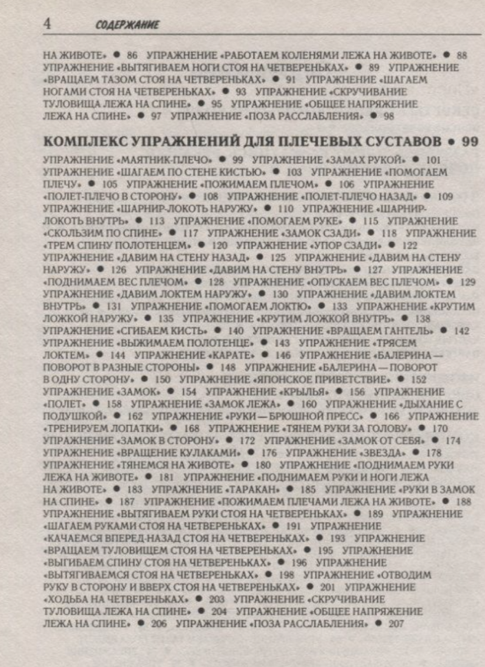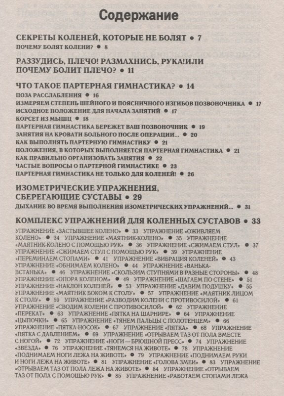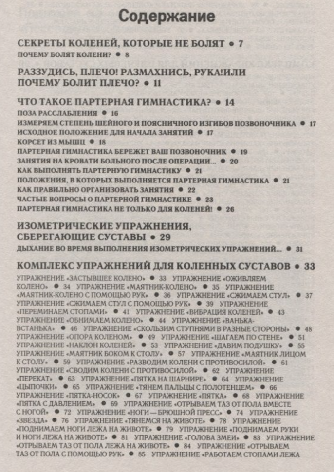 Книга представляет собой набор упражнений на коленные и плечевые суставы. К примеру, для плечевых суставов дано порядка 50 упражнений. Пояснения же о том, как и что делать, минимальные - всего несколько страниц. Нет комплексов упражнений. Полезность книги в связи с этим для меня оказалась очень низкой.