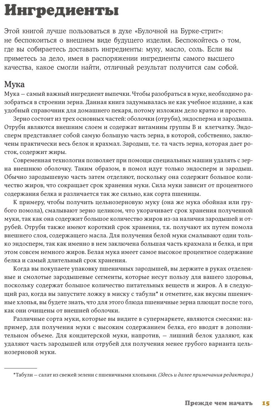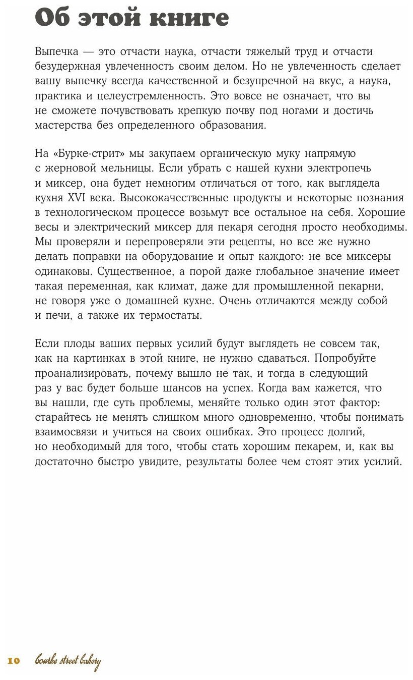 Профессиональное издание для тех, кто хочет научиться правильно печь хлеб и другие мучные изделия дома или даже открыть собственную пекарню. В начале книги приведены сведения о необходимых ингредиентах и требуемом оборудовании, а также основах хлебопечения и технологиях. Довольно подробный раздел о заквасках. Советы также сопровождают все рецепты, разбитые по разделам «Хлеб», «Выпечка», «Другие кондитерские изделия» (Торты и печенье