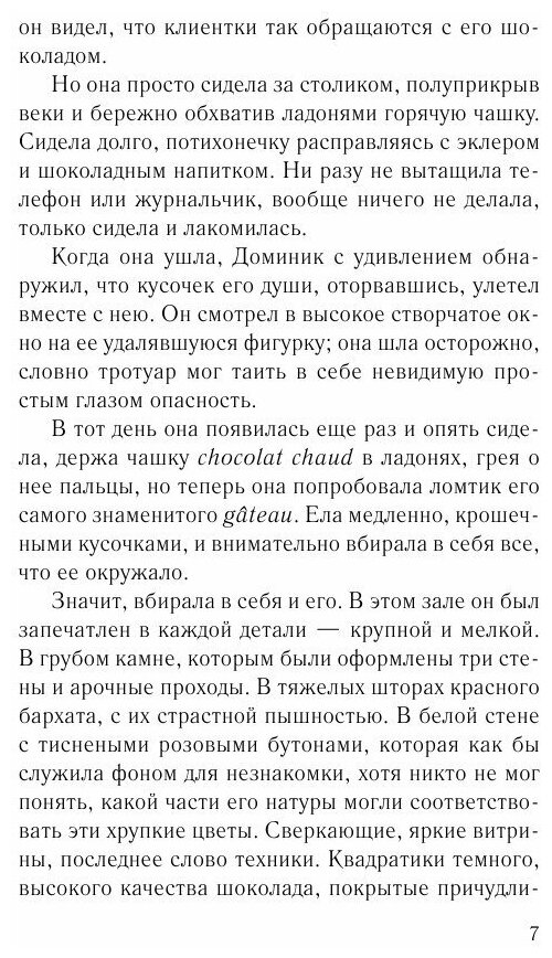 Очень тоненькая обложка. Роман из "шоколадной серии", но слабее, чем первые книги. Перебор с постельными сценами, из-за чего, на мой взгляд, пострадали любимые мною описания Парижа и кондитерских, не так раскрыты характеры. Кажется, что автор просто хотела быстрее написать этот роман, чтобы закончить историю о сёстрах Кори, а в уме у неё уже были другие замыслы. Для любителей этой серии, можно почитать и данный роман, но если не прочитаете, то много не потеряете. В целом, язык и стиль автора мне нравится.