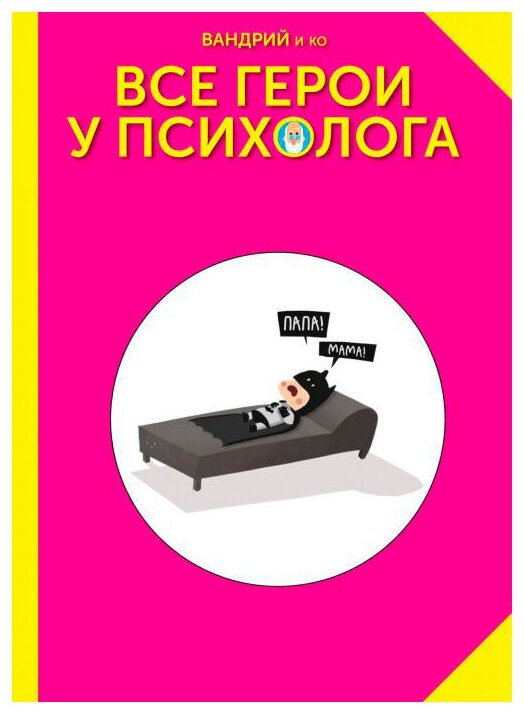 Аннотация к книге "Все герои у психолога" Вандрий: Вы никогда не задумывались, а всё ли в порядке с головой у персонажей ваших любимых фильмов, книг, комиксов и видеоигр? Поверьте, они все полные безумцы! Эта книга — ваша замочная скважина прямо в кабинет психолога, где герои делятся самыми сокровенными секретами, пытаются разобраться в своих проблемах, совладать со страхами и понять происхождение навязчивых кошмаров. Под обложкой вы найдёте карикатуры с более чем 140 персонажами, созданные более чем 50 художниками и одним сценаристом. И ВСЕ ОНИ грёбаные психи!