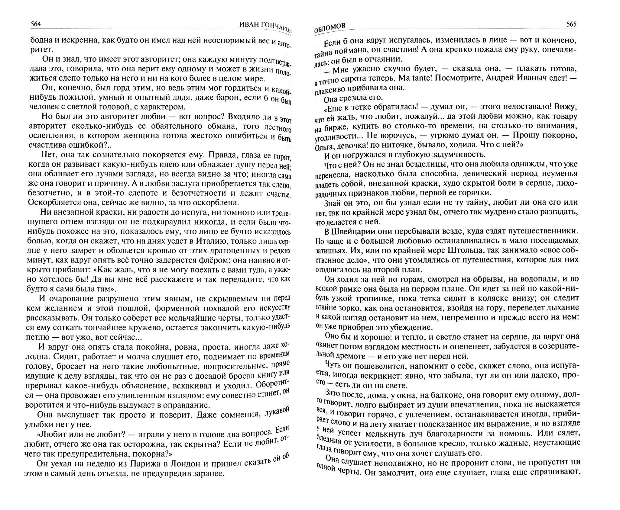 Хороший однотомник, дающий более-менее исчерпывающее представление о главных произведениях Гончарова. Может быть, "Фрегат "Паллада"" тоже был бы уместен, но это уже не роман, а путевые очерки. Бумага белая, печать четкая, хотя и несколько мелкая, читать в целом приятно.