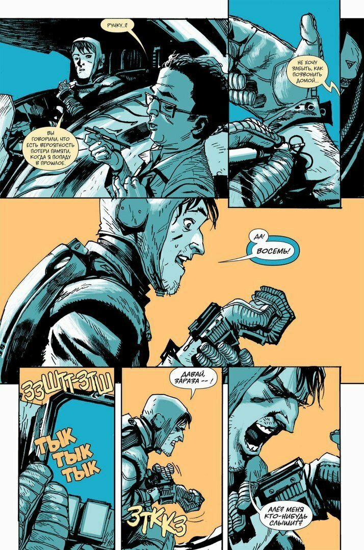 Рисунок Альбукерке в этом комиксе скуп на цвета, но они имеют важное значение для сюжета и определяют временной промежуток, в котором находятся герои. В целом мне очень нравится такое графическое оформление, просто и стильно.
