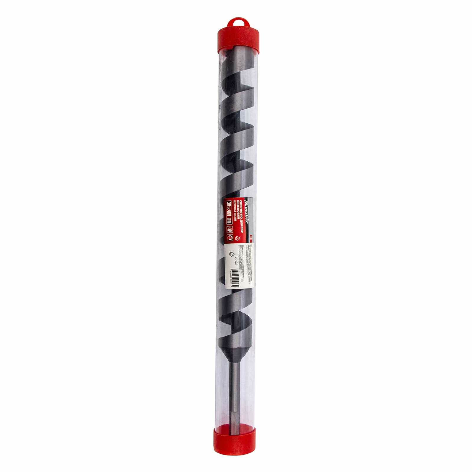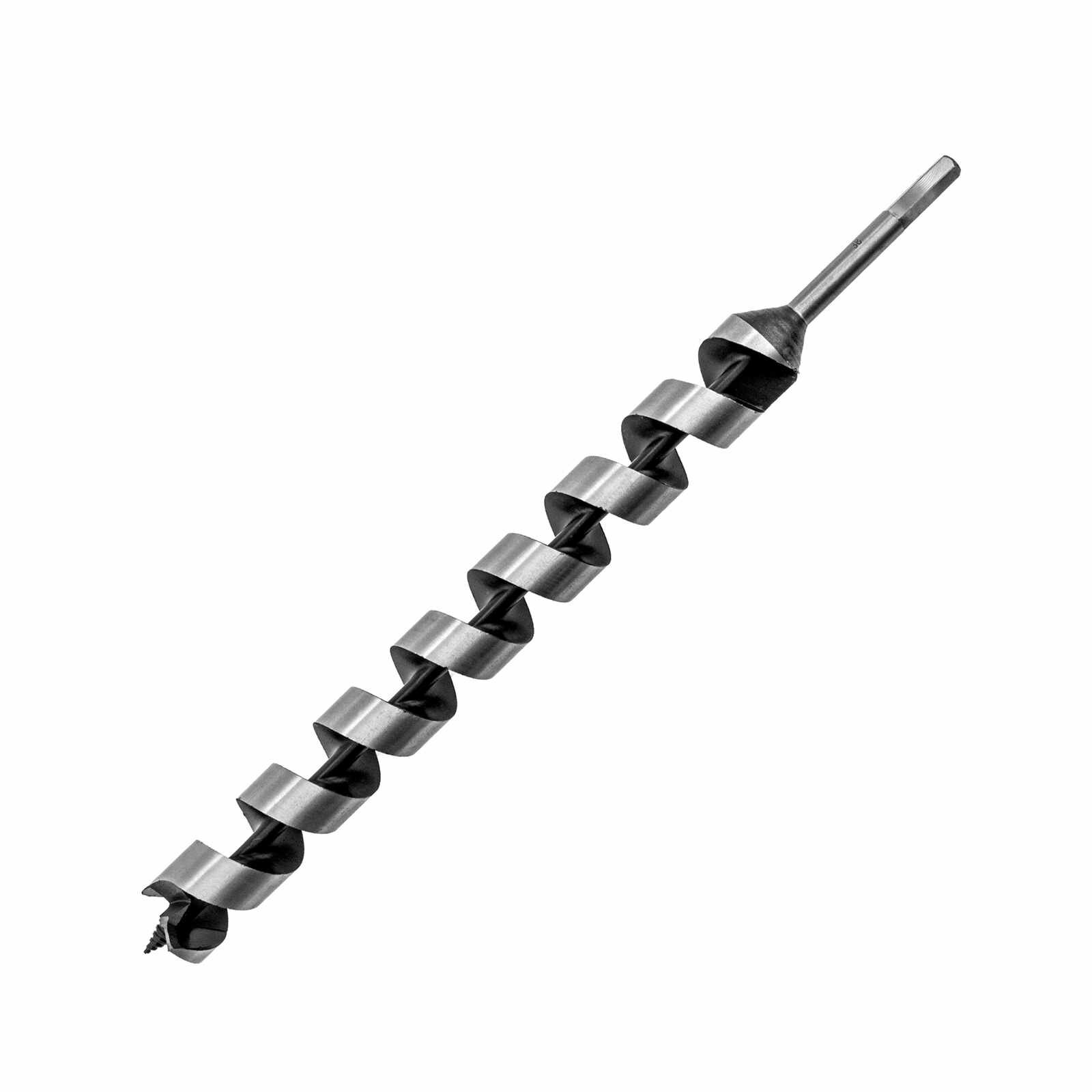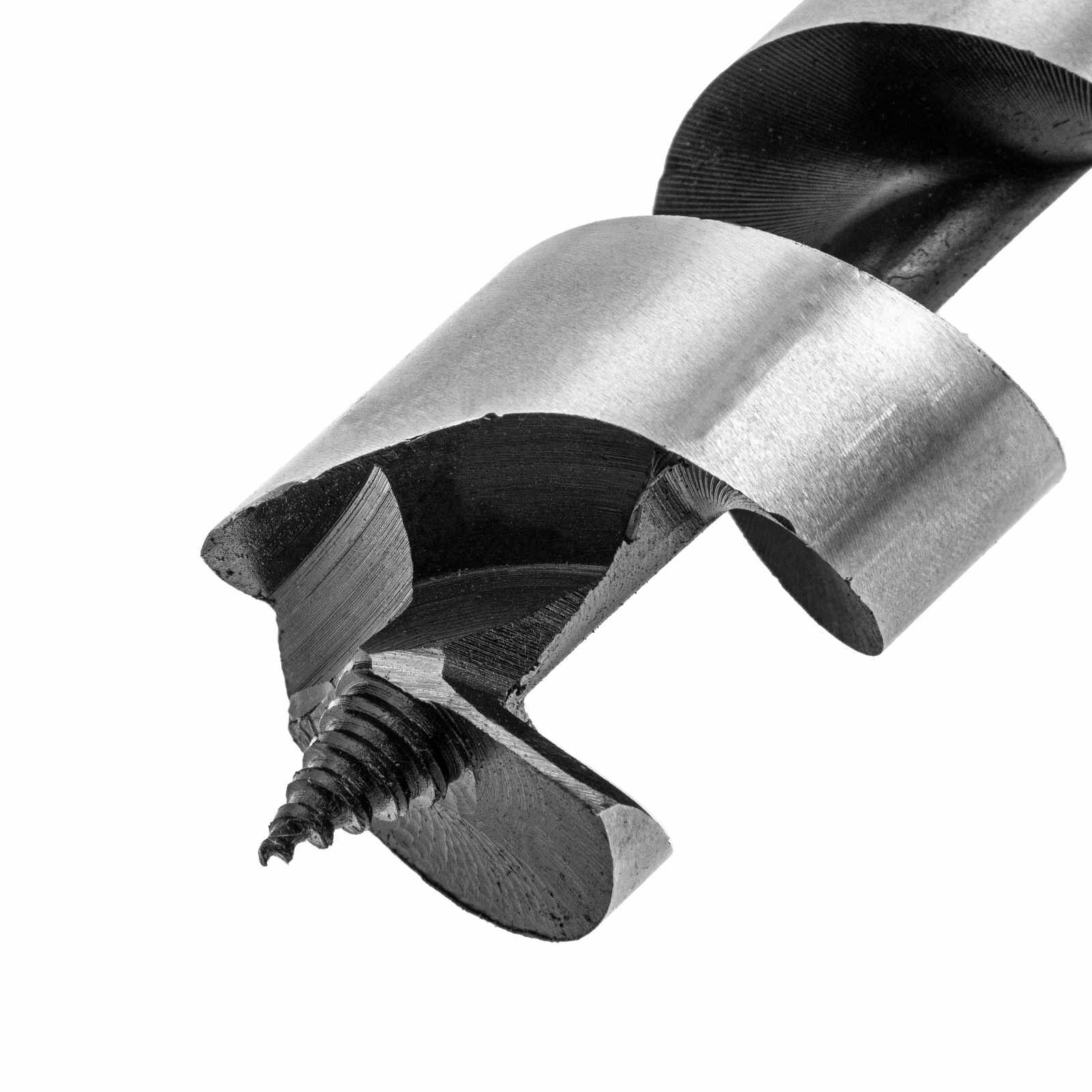 Изготовлено из углеродистой стали с твердостью режущей части 40 HRС. Сверло имеет центрирующее остриё со спиральной нарезкой, уменьшающей осевую нагрузку, и острую подрезную кромку, которая позволяет с высокой точностью просверлить отверстие с гладкими поверхностями, предотвращая смещение сверла и исключая необходимость в предварительном засверливании. Шестигранный хвостовик обеспечивает надежное удержание сверла в патроне.