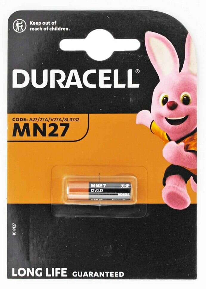 **Батарейка Duracell Standard MN27** — щелочной элемент емкостью 400 мА·ч и размером 8 × 28,2 мм. Обладает высоким рабочим ресурсом, является надежным и долговечным источником энергии для устройств любого назначения, в том числе в высоким энергопотреблением — игровых контроллеров, цифровых видеокамер, игрушек на пульте управления и других. В упаковке 1 шт.