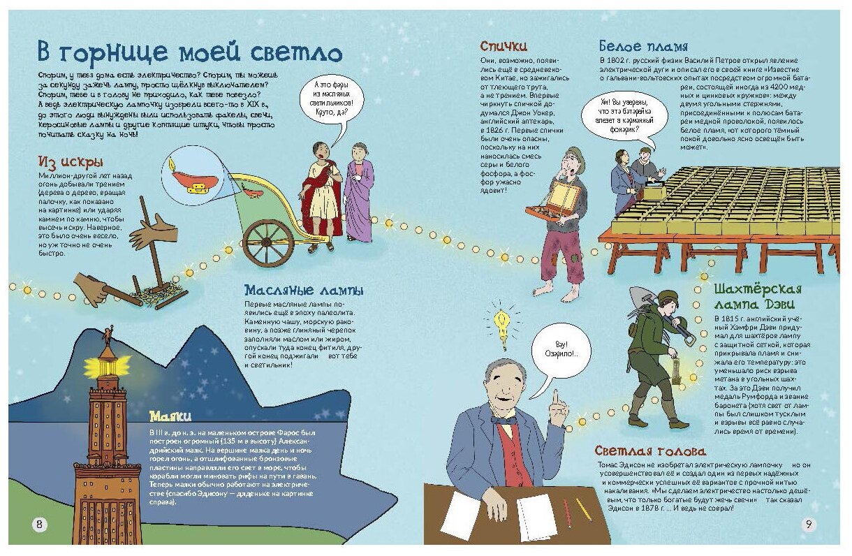 Что можно сказать об электрической лампочке? А кто такой Никола Тесла? А радар и теодолит — это что? Не знаешь — не беда, не помнишь — не проблема, а если помнишь и знаешь — найдём что-нибудь новенькое! В этой книге собрано множество историй и интересных фактов: надо же знать о «предках» современных сверхмощных приборов и о том, кто их придумал! Книги серии «Разберём и разберёмся» будут интересны и школьникам, и их родителям. Мэтт Тёрнер собрал в них увлекательные истории про изобретения, а Сара Коннер нарисовала замечательные иллюстрации. На русском языке книги выходят в мастерском и остроумном переводе Татьяны Малышевой.