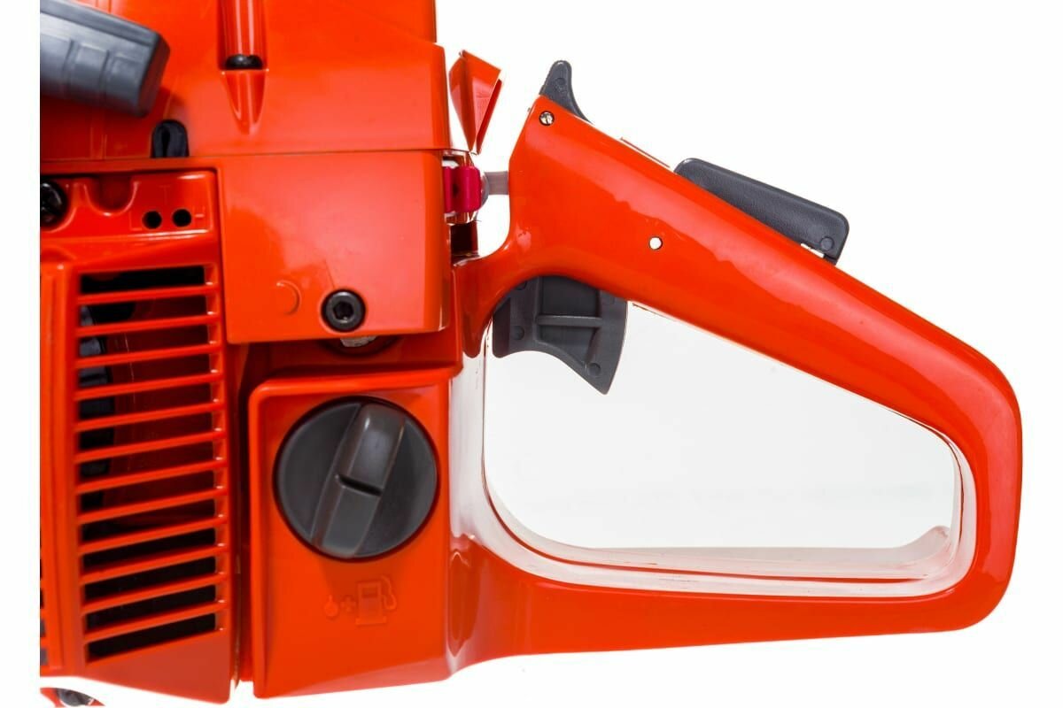 Бензопила Husqvarna – великолепный вариант для частного использования. Вы сможете заниматься валкой деревьев или распиловкой дров, испытывая от рабочего процесса подлинное удовольствие, о котором позаботится мощный двигатель, которым оснащен этот электроинструмент. В арсенале бензопилы мотор с рабочим объемом .5 см³, который развивает мощность 3.8 л.с. Устройству под силу даже очень плотная и твердая древесина.