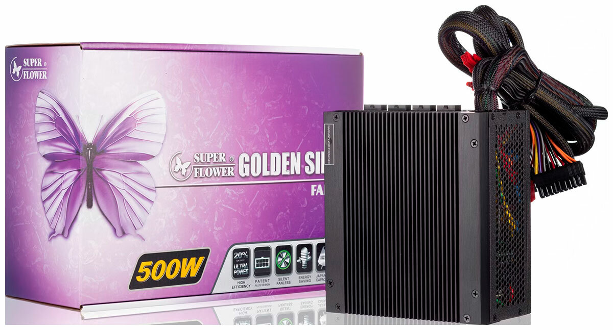 Блоки питания Super flower SF-500P14FG ATX 500W Super Flower Power Golden Silent Fanless - его сверхвысокая эффективность и выдающаяся производительность - прекрасные результаты непрерывной приверженности Seasonic инновациям. Улучшенная эффективность при низкой нагрузке, сниженные почти до нуля пульсации и тишина в работе - вот лишь некоторые из характеристик, которые отличают этот БП от других источников питания на рынке.