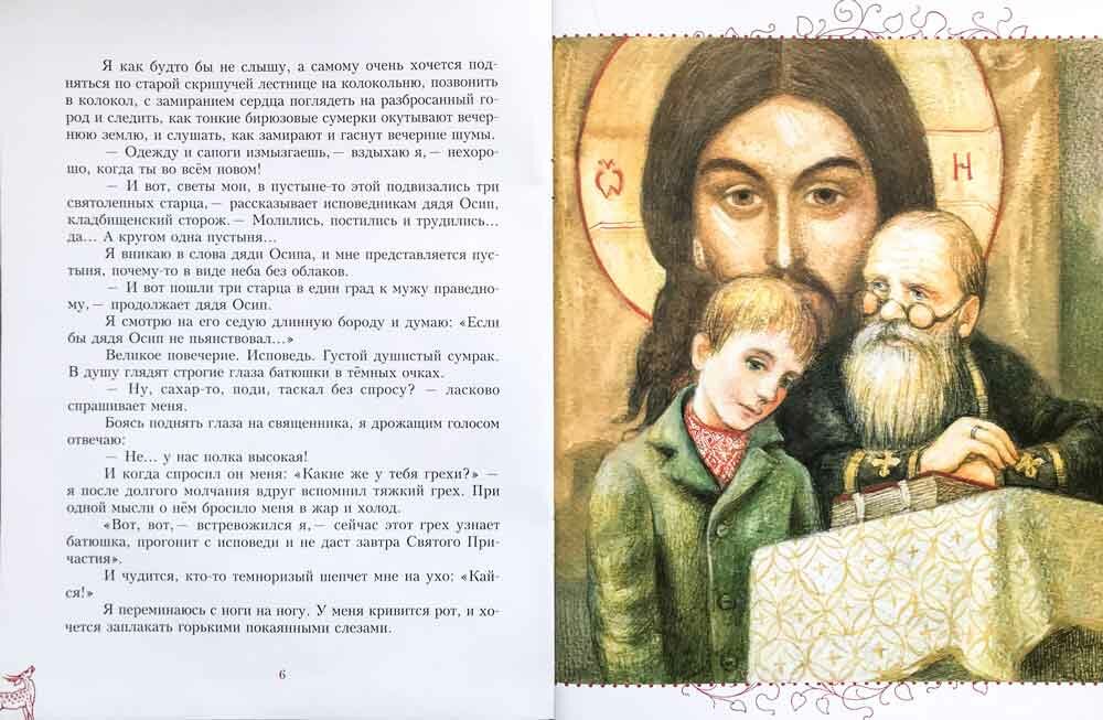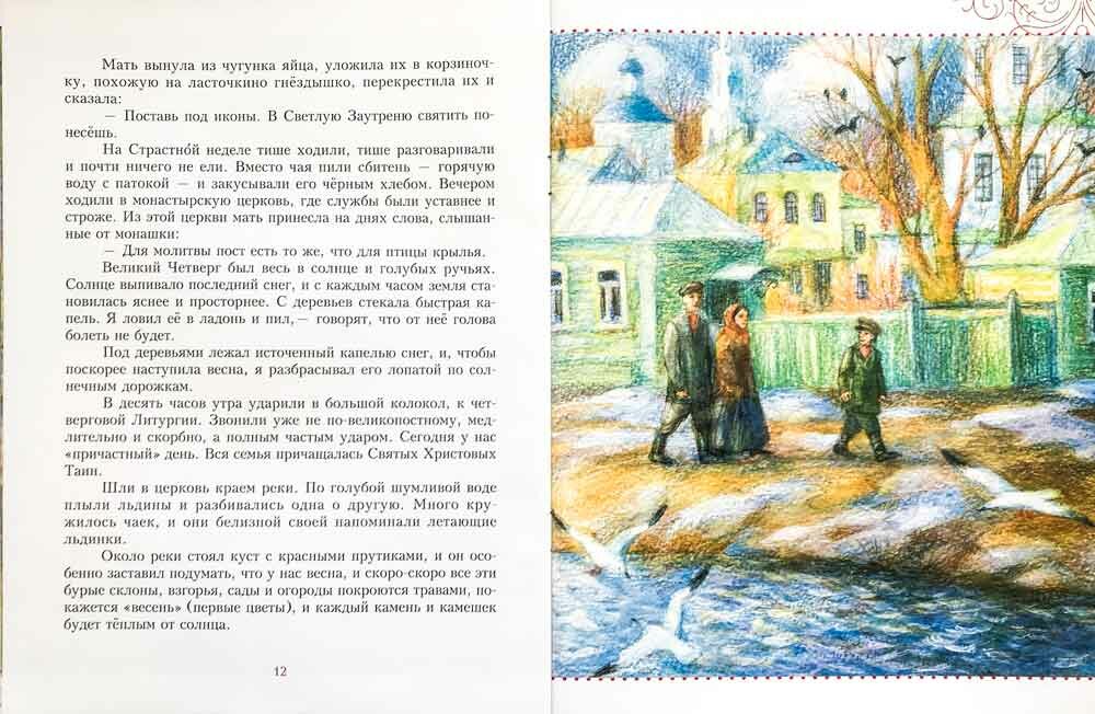 Замечательная книжка для детей и взрослых. Напоминает "Лето Господне" И.Шмелева. Прекрасный язык, прекрасные описания богослужений, праздников и переживаний мальчика. Местами до слез пробирает. Хорошие реалистичные иллюстрации, которые можно показывать самым маленьким детишкам.