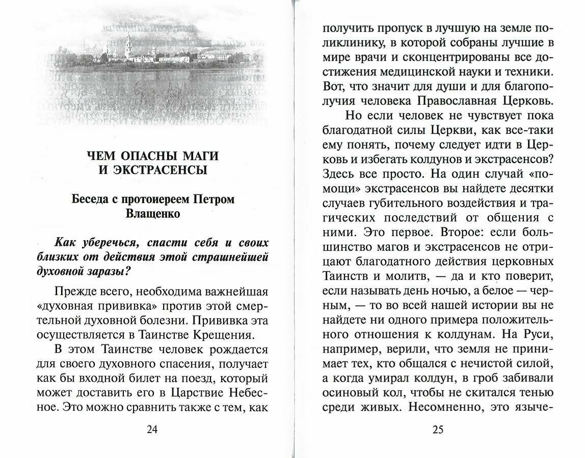 книга очень нужная.Все обьясняется с точки зрения человека почему и как надо вести себя с людьми,которые предлагают принимать какую либо помощь от различных сект.Книга написана доступным языком. Великолепно оцениваю обьяснение 90-го псалома.Как защитить себя и свою семью от действий магического характера. Подарила три книги друзьям верующим оценили высоко.Мне понравились исповеди свидетельства бывших магов и экстрансенсов