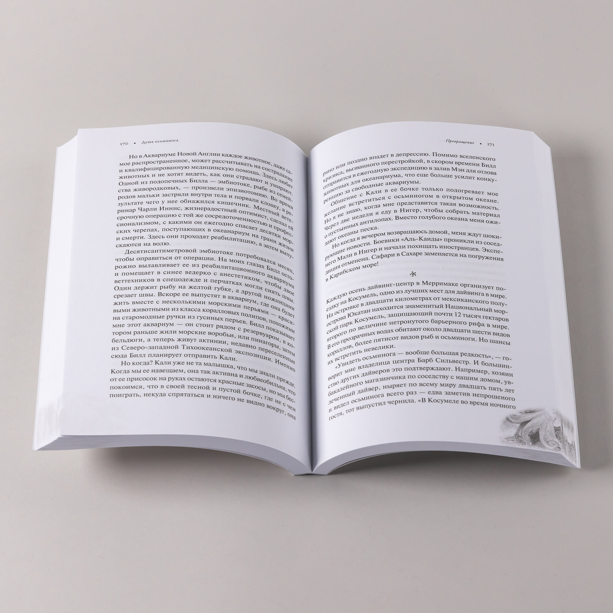Известный автор-натуралист Сай Монтгомери исследует эмоциональный и физический мир осьминогов, удивительные отношения, складывающиеся между людьми и этими животными, а также знакомит нас с сообществом увлеченных специалистов и энтузиастов, сложившимся вокруг этих сложных, умных и общительных животных. Практикуя настоящую «журналистику погружения», от Аквариума Новой Англии до рифов Французской Полинезии и Мексиканского залива, Монтгомери подружилась с несколькими осьминогами с поразительно разными характерами — нежной Афиной, напористой Октавией, любопытной Кали и жизнерадостной Кармой — которые проявляют свой интеллект множеством разных способов: убегают из «суперзащищенных» аквариумов, воруют еду, играют в мяч, разгадывают головоломки. Опираясь на научные сведения, Монтгомери рассказывает об уникальной способности осьминогов к решению задач. Временами веселая и смешная, временами глубокая и трогательная, книга «Душа осьминога» рассказывает нам об удивительном контакте двух очень разных видов разума — человека и осьминога.