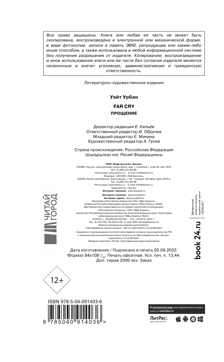 Книга: Far Cry. Прощение (Сорокина Яна Борисовна); Бомбора, 2018